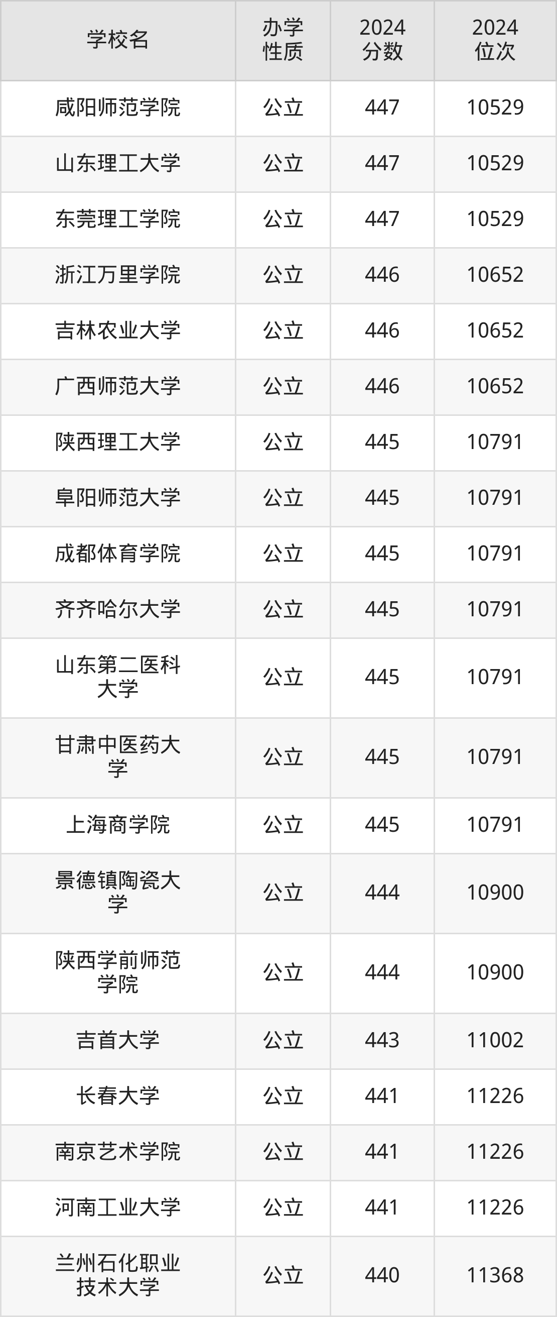 | 景德镇陶瓷大 学 | 444 | 10900 |