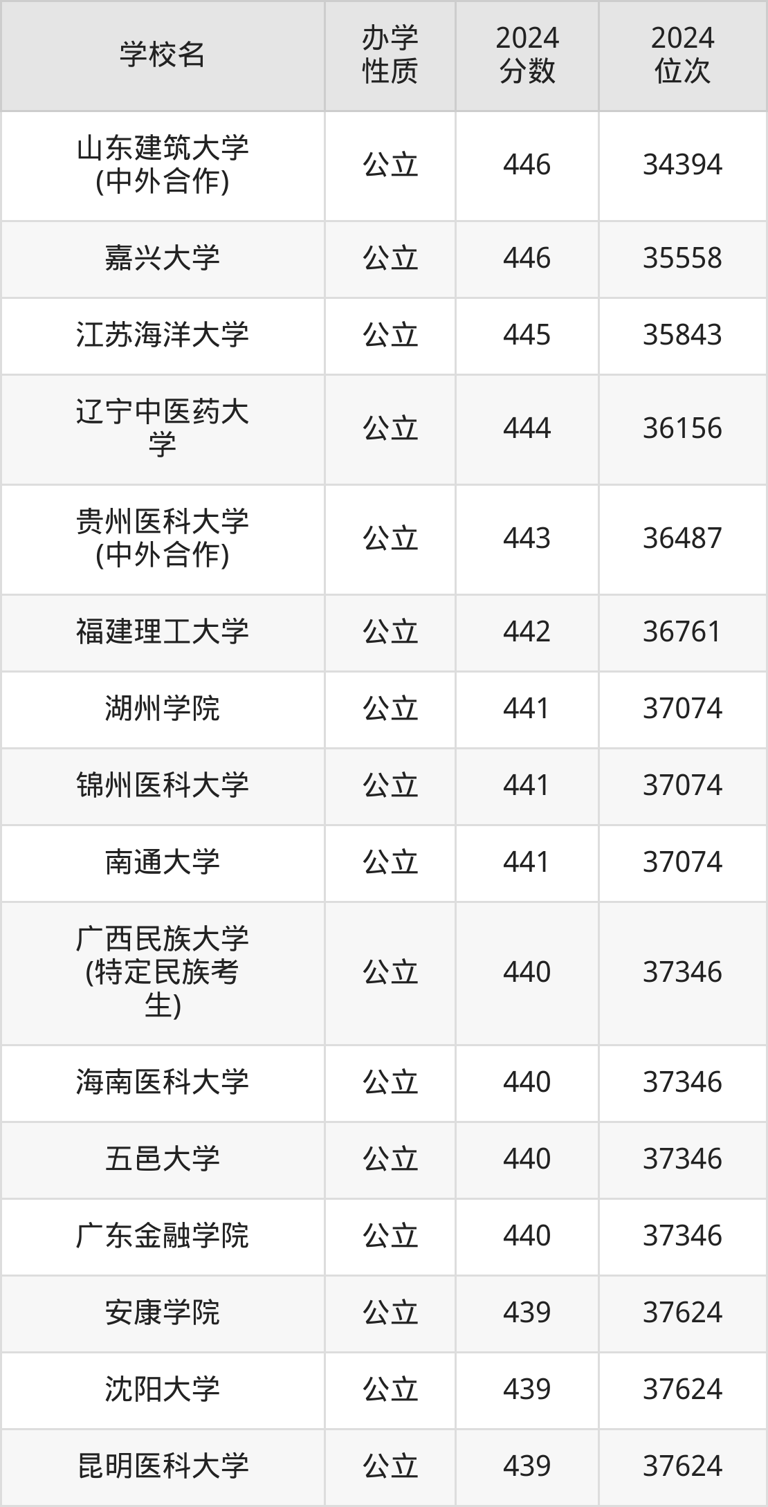 | 贵州医科大学 (中外合作) | 443 | 36487 |