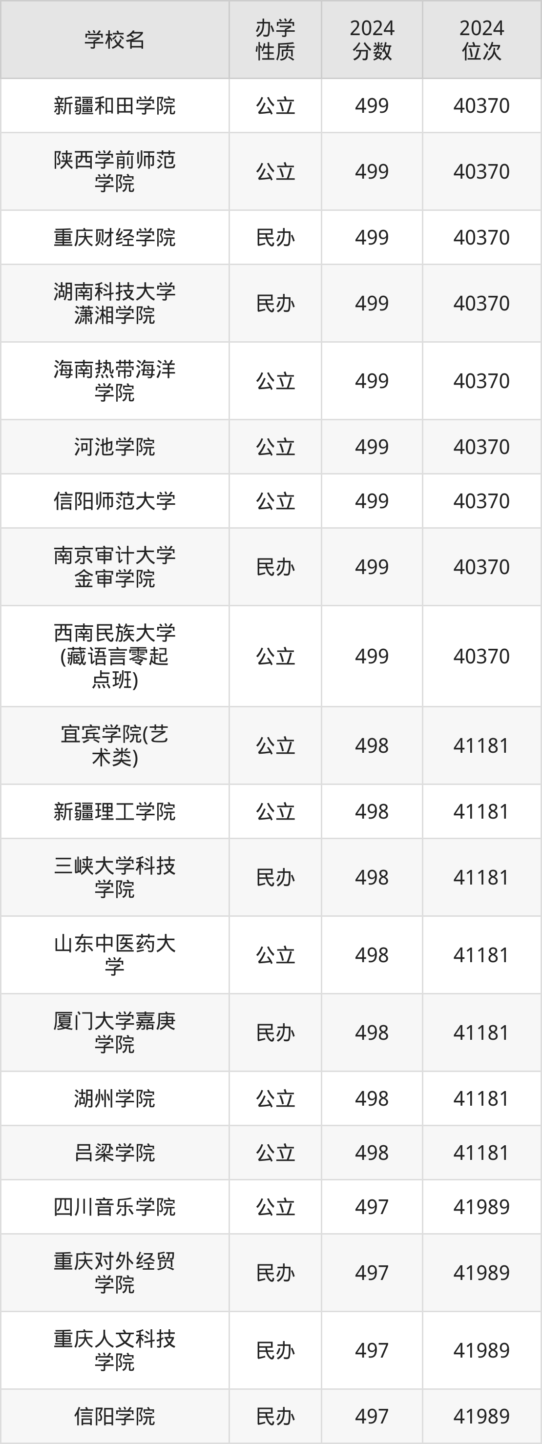 | 宜宾学院(艺 术类) | 498 | 41181 |
