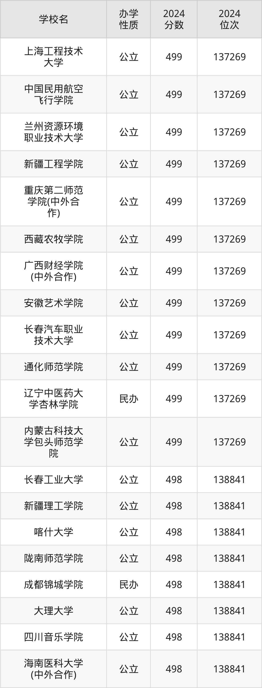 | 广西财经学院 (中外合作) | 499 | 137269 |