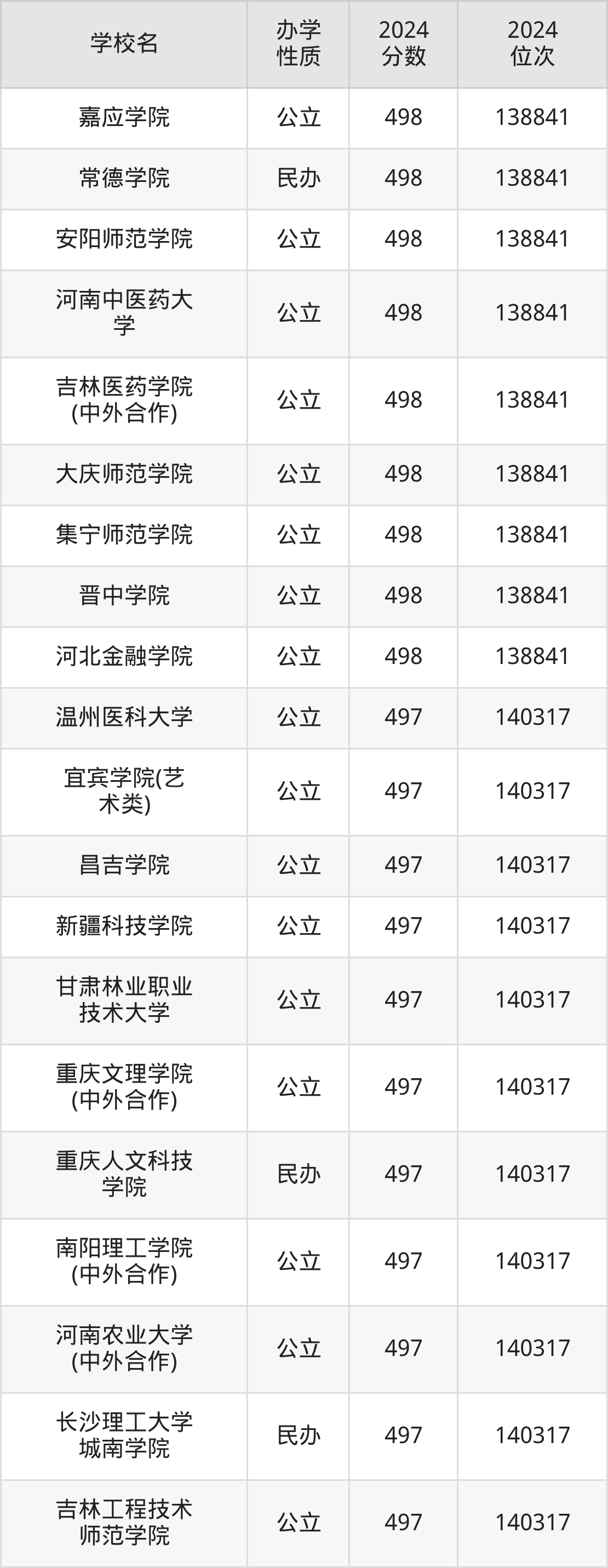 | 吉林医药学院 (中外合作) | 498 | 138841 |