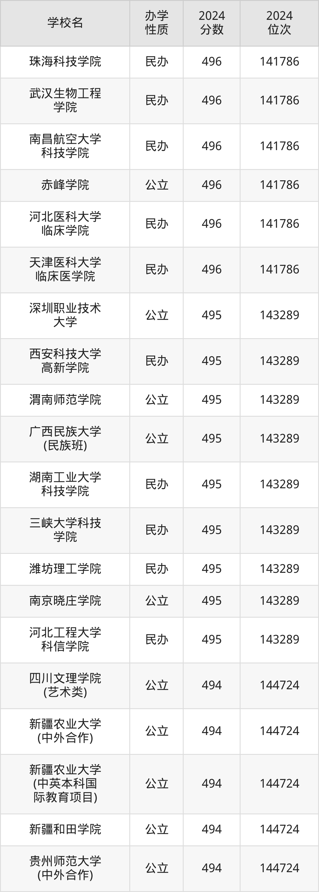 | 北部湾大学( 中外合作) | 492 | 147598 |