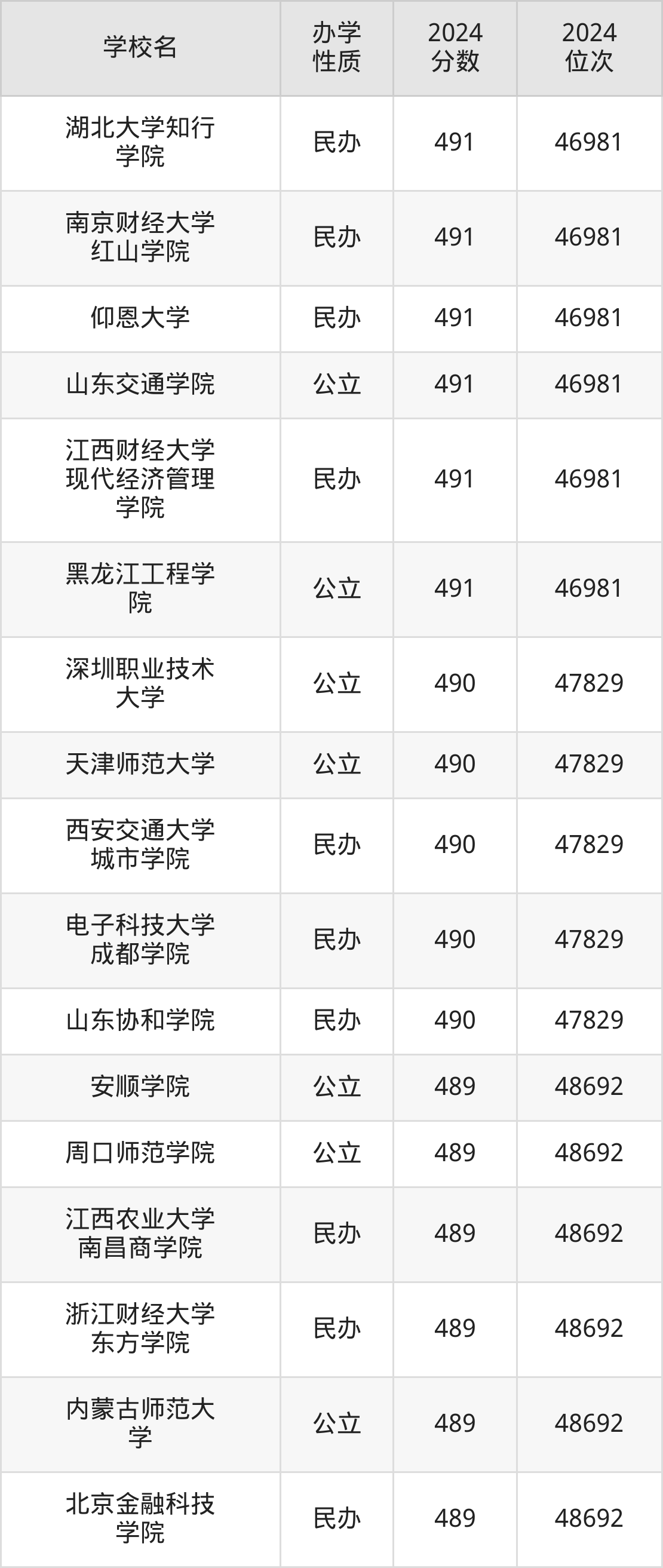 | 江西农业大学 南昌商学院 | 489 | 48692 |