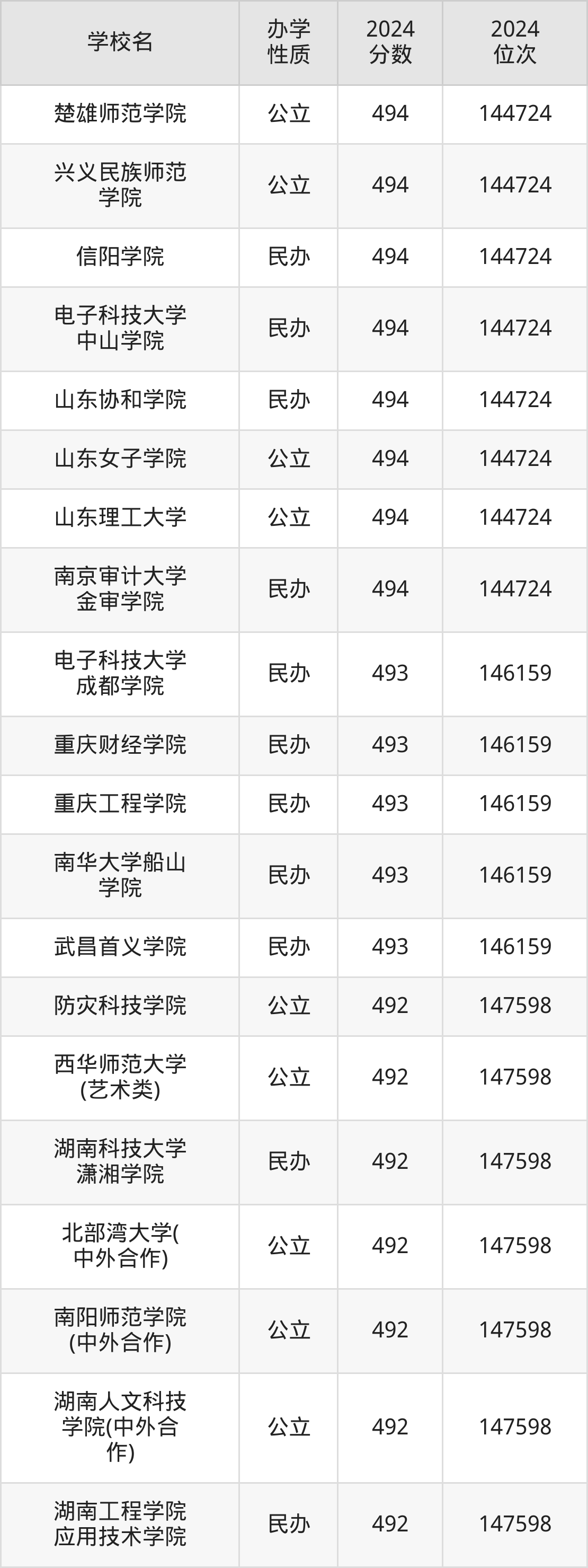| 湖南人文科技 学院(中外合 作) | 492 | 147598 |