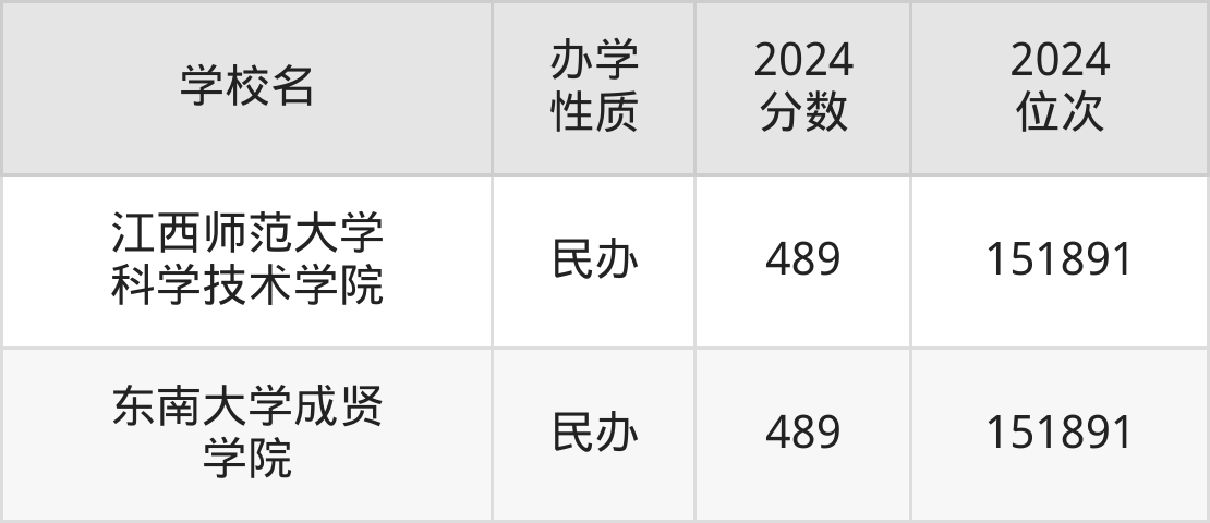 | 江西师范大学 科学技术学院 | 489 | 151891 |