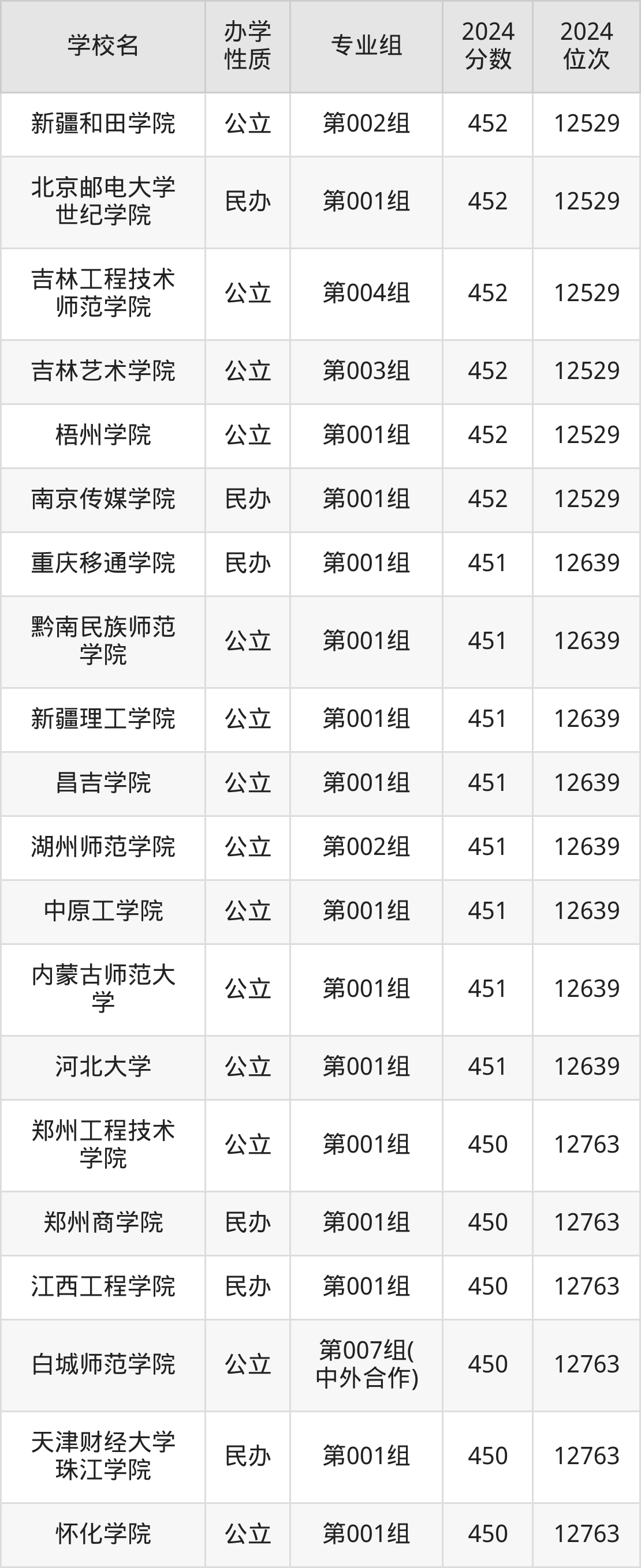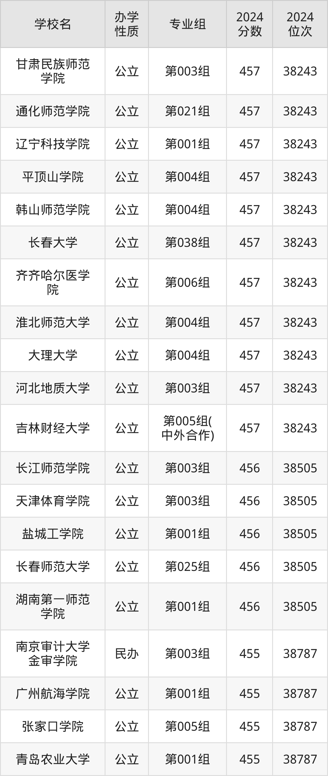 | 学校名 | 专业组 | 2024 分数 | 2024 位次 |
