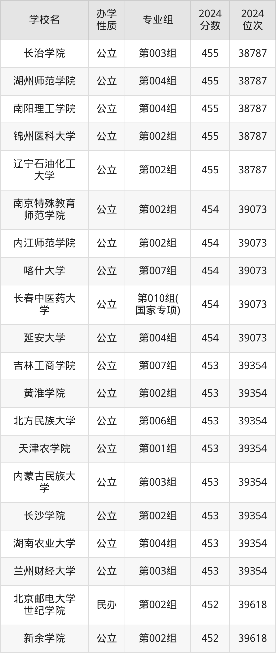 | 长春中医药大 学 | 第010组( 国家专项) | 454 | 39073 |