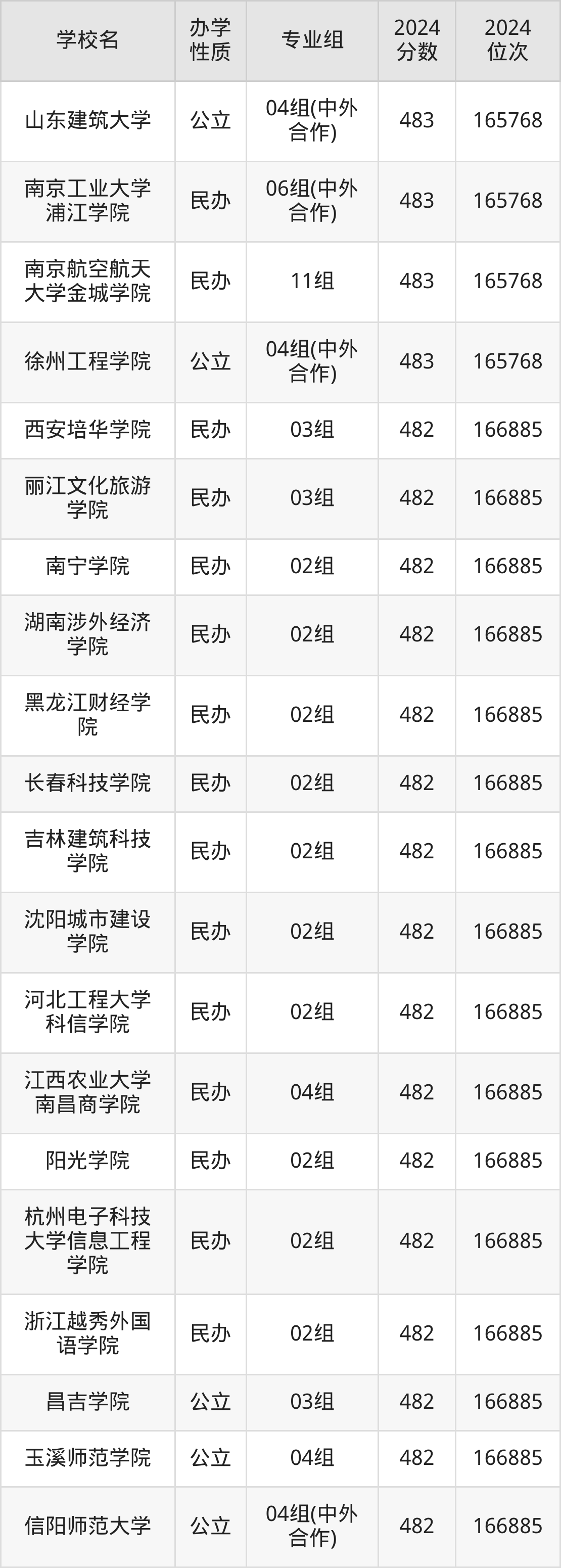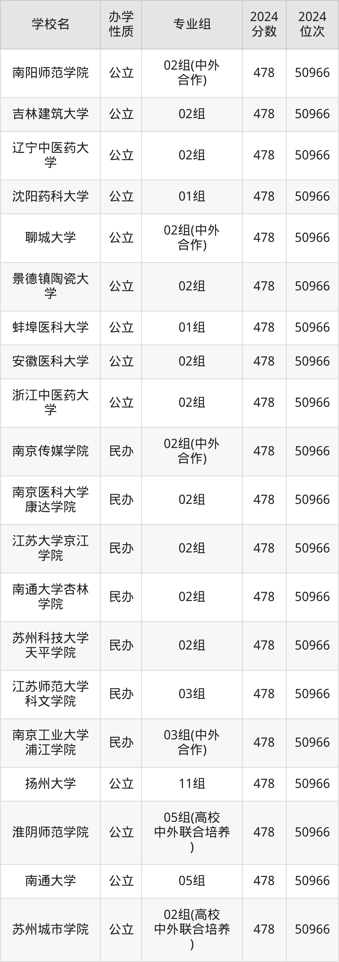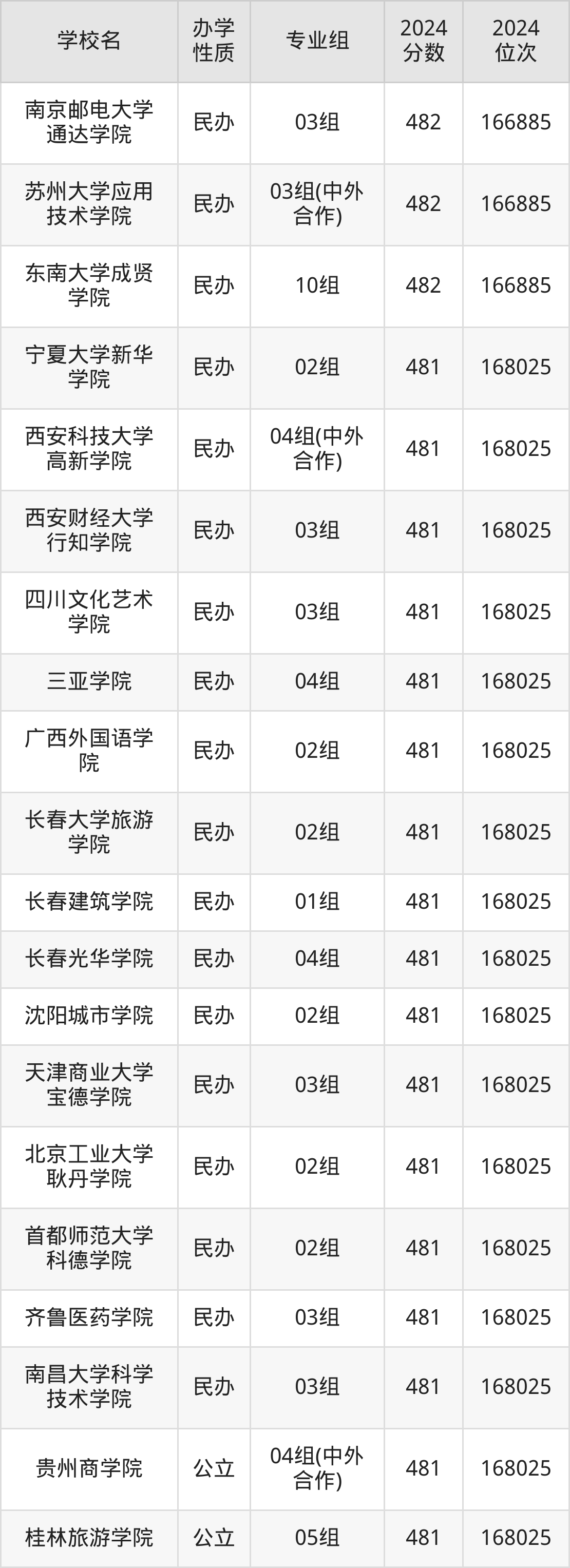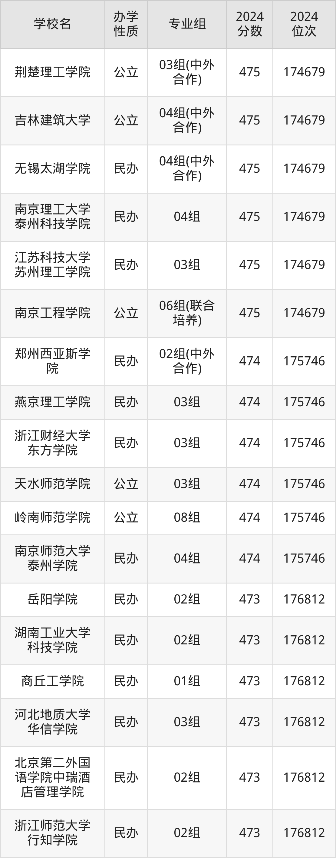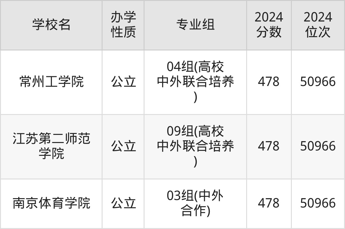 | 学校名 | 专业组 | 2024 分数 | 2024 位次 |