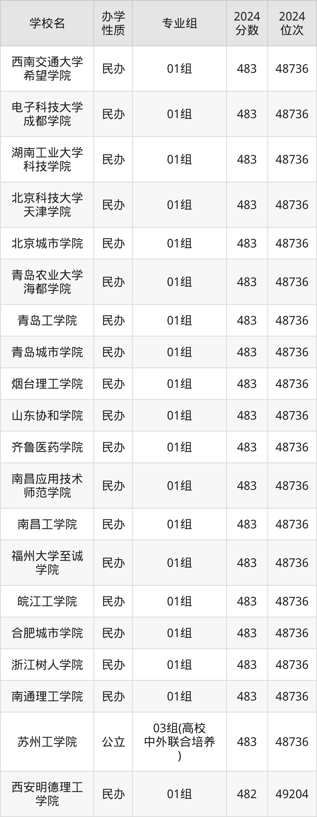 | 西安明德理工 学院 | 01组 | 482 | 49204 |
