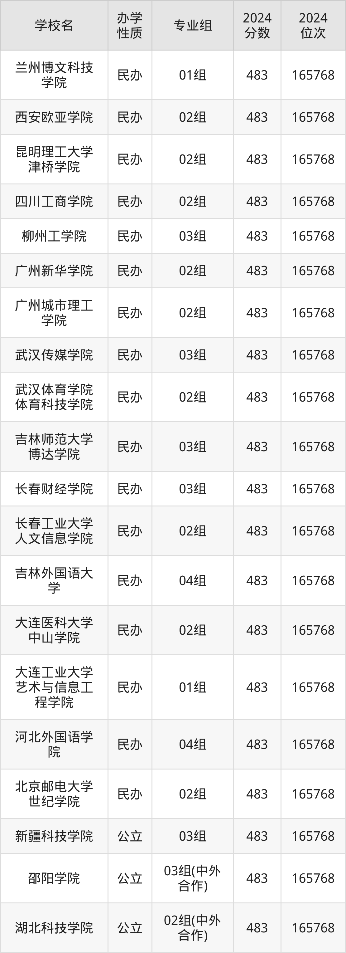 | 通化师范学院 | 03组(中外 合作) | 480 | 169209 |