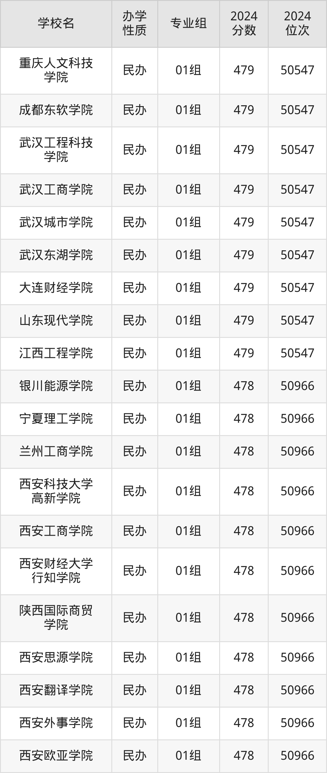 | 西安培华学院 | 01组 | 479 | 50547 |
