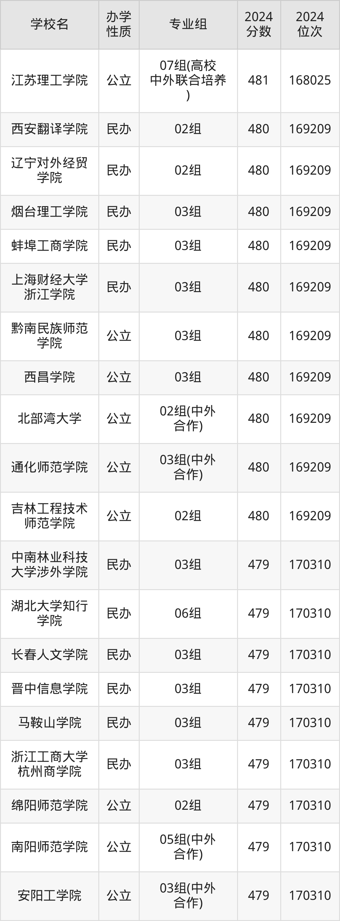 | 安阳工学院 | 01组(中外 合作) | 479 | 170310 |