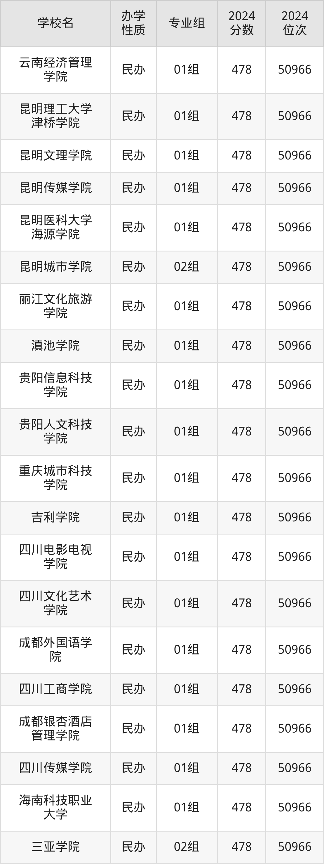 | 昆明城市学院 | 01组 | 478 | 50966 |