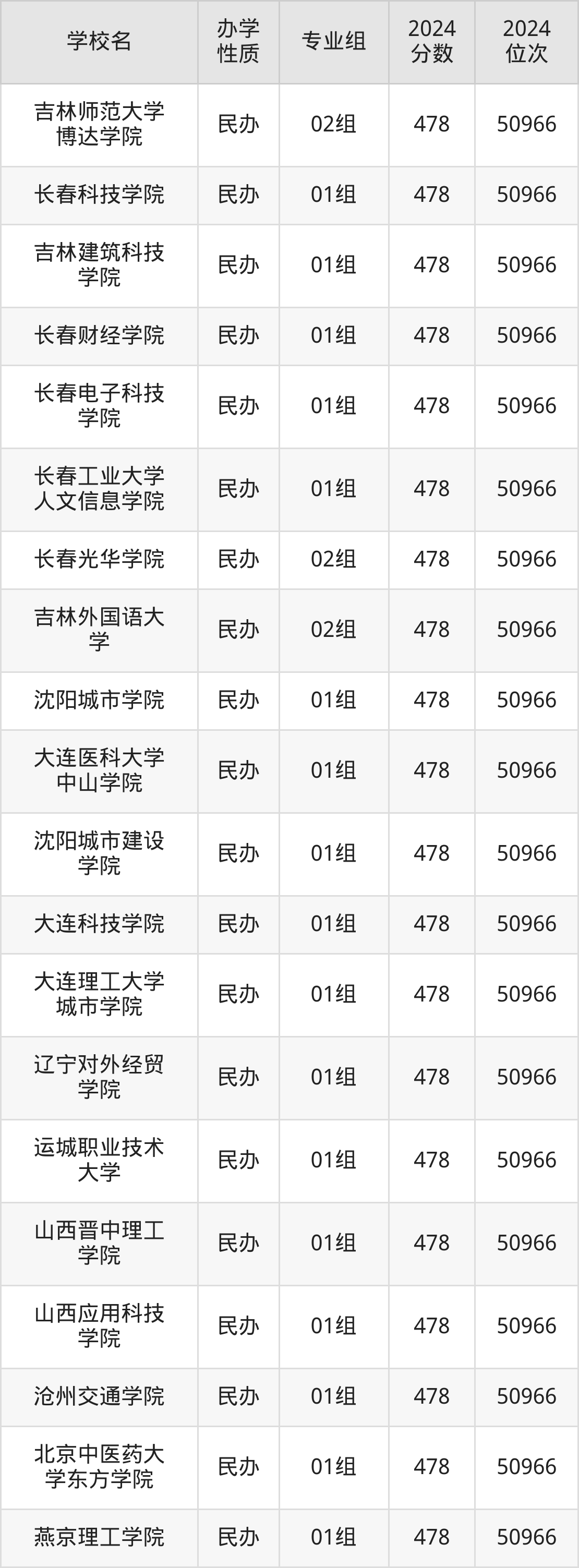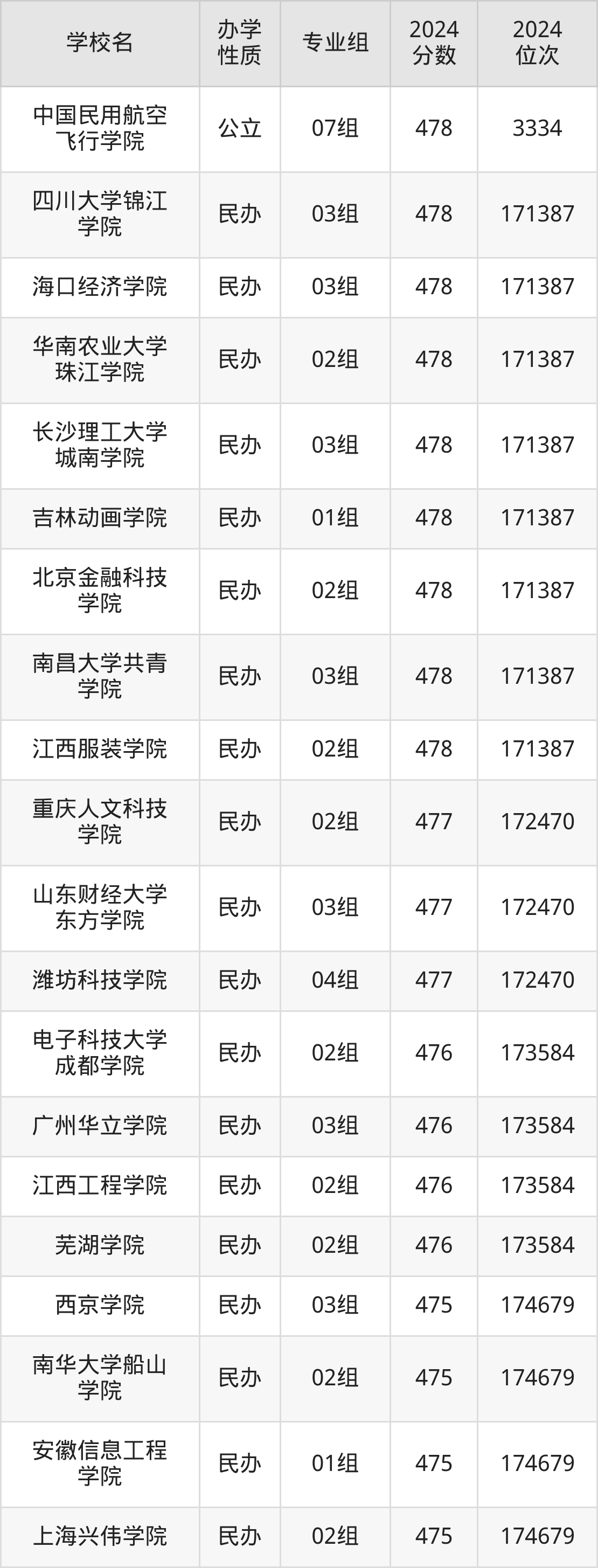 | 长春光华学院 | 03组 | 477 | 172470 |