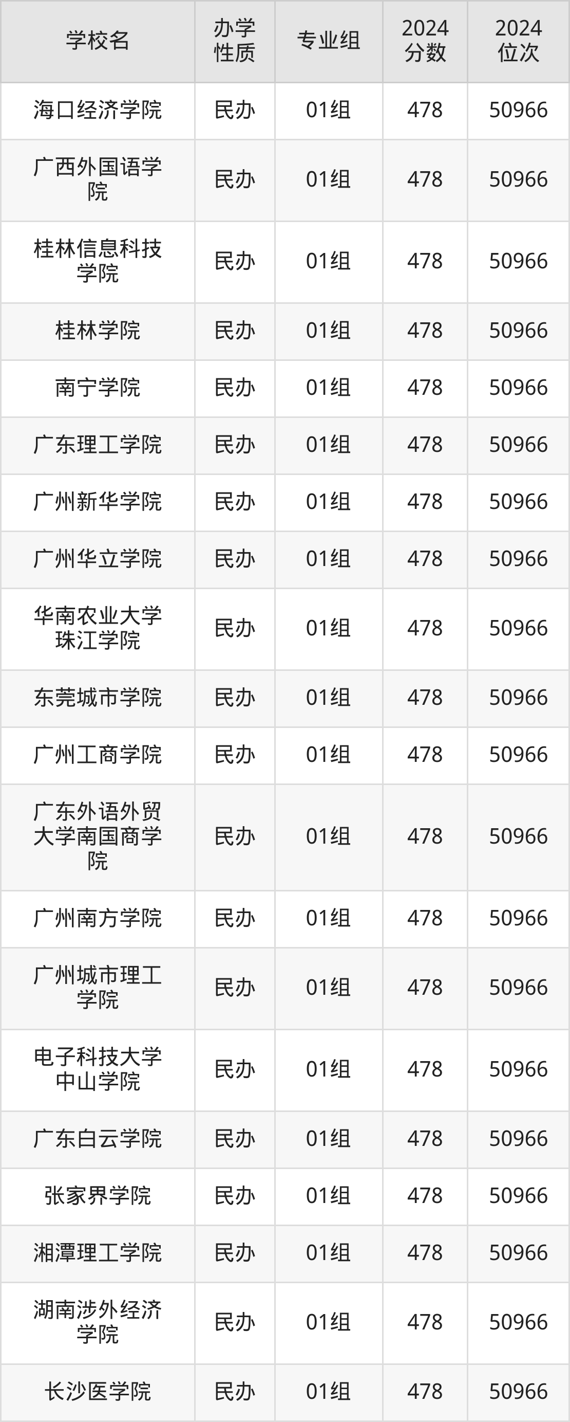 | 南华大学船山 学院 | 01组 | 480 | 50085 |