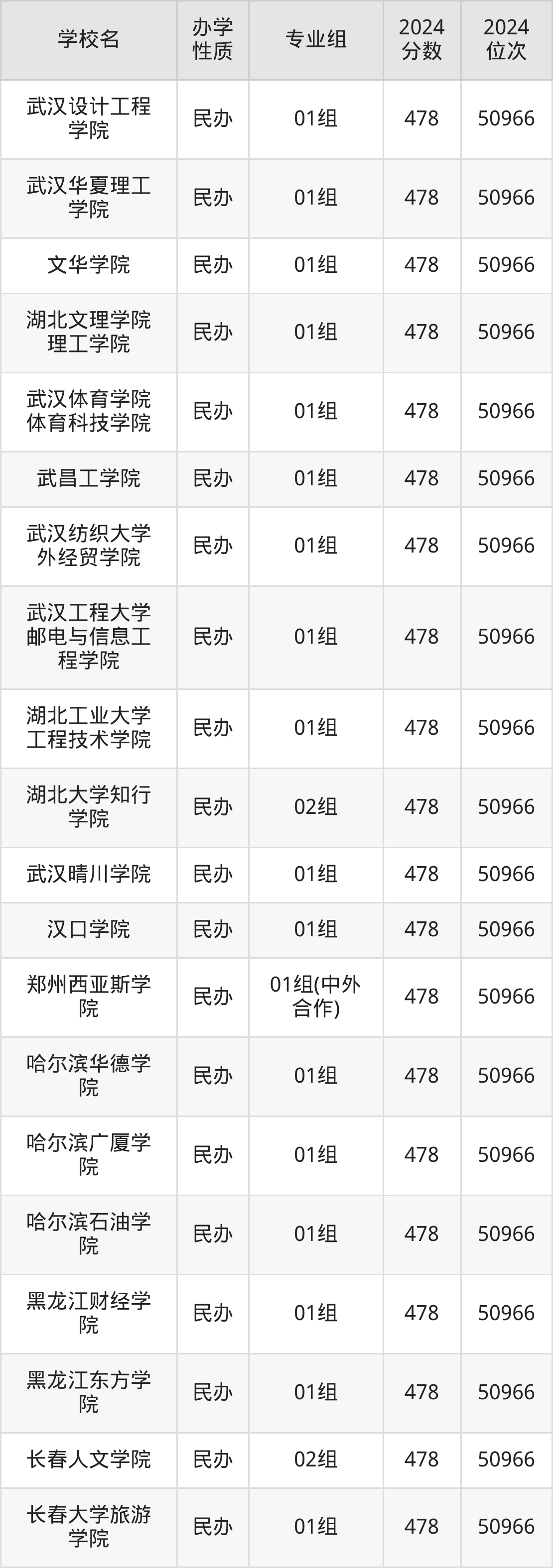 | 西安培华学院 | 02组 | 478 | 50966 |