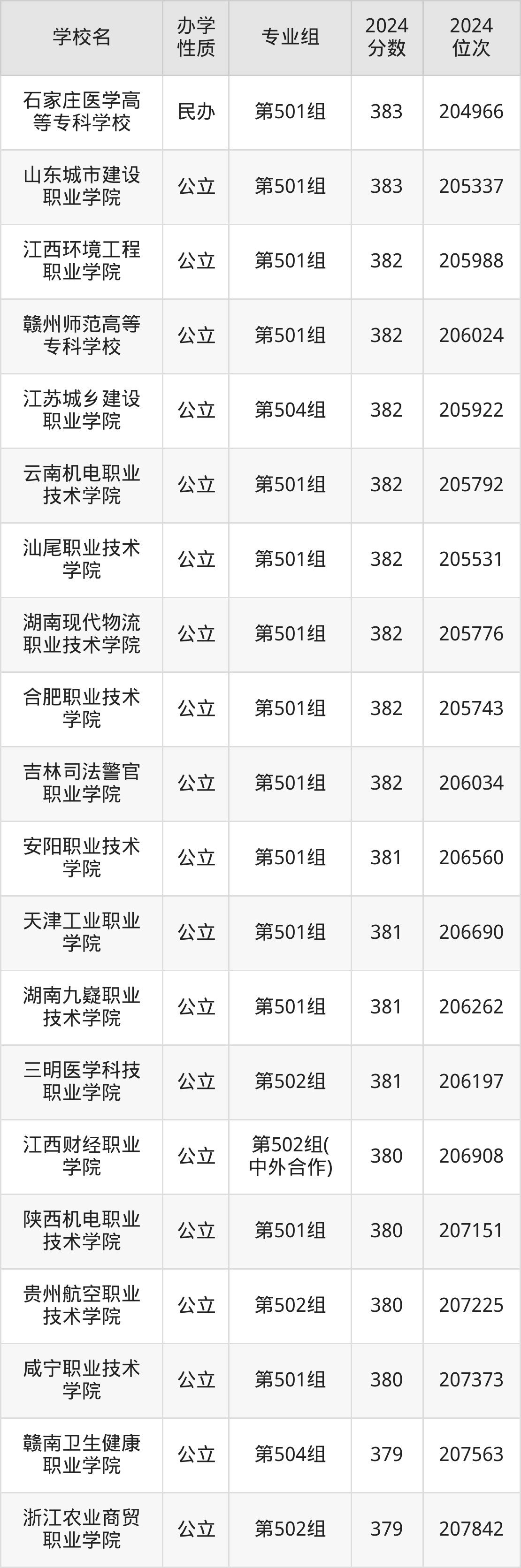 | 江西财经职业 学院 | 第502组( 中外合作) | 380 | 206908 |