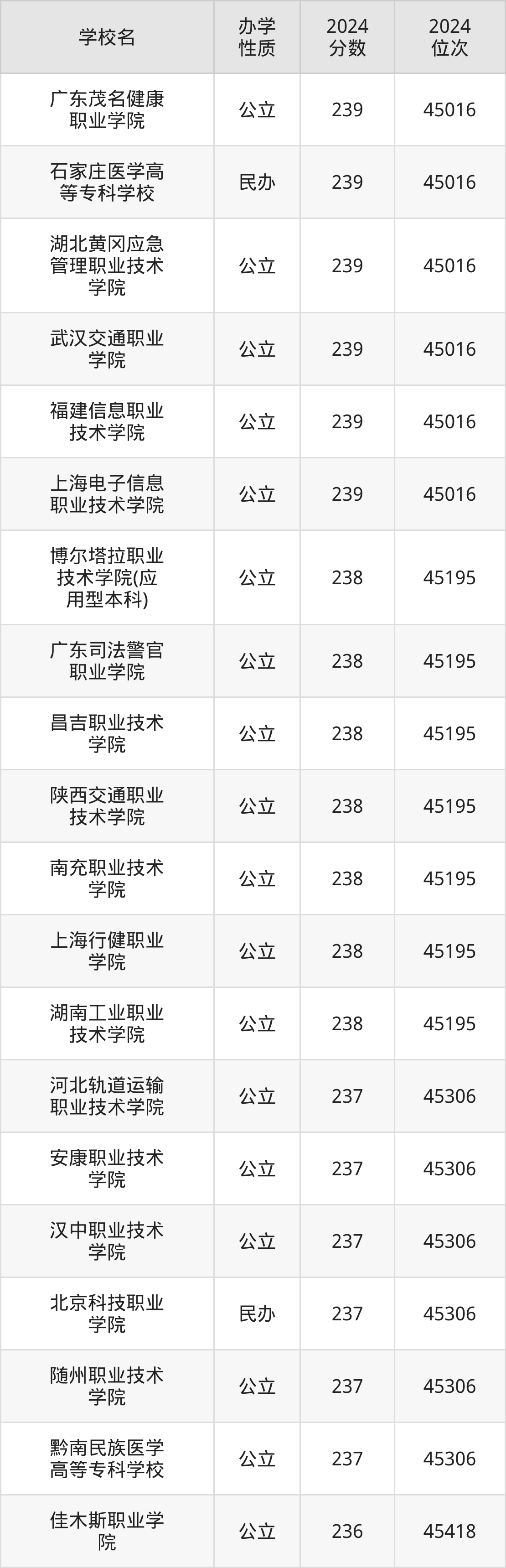 | 广东茂名健康 职业学院 | 239 | 45016 |