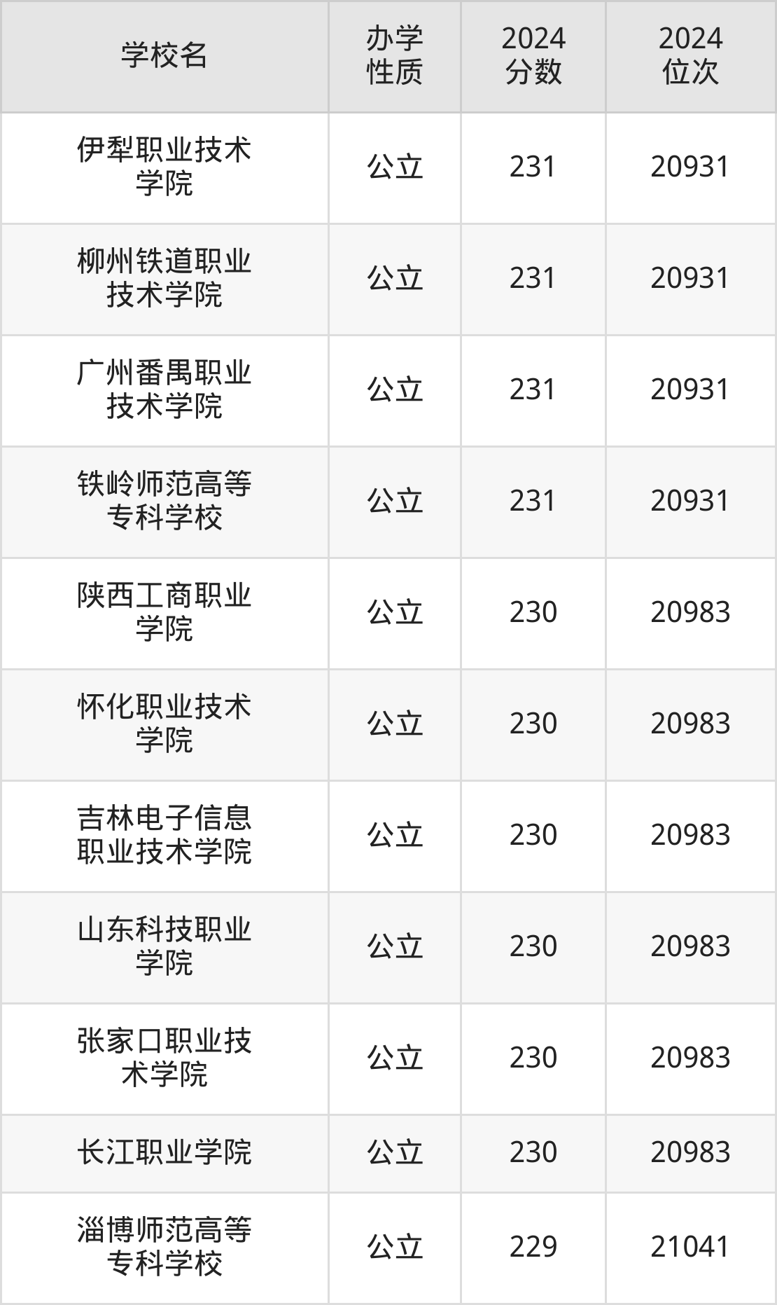 | 吉林电子信息 职业技术学院 | 230 | 20983 |