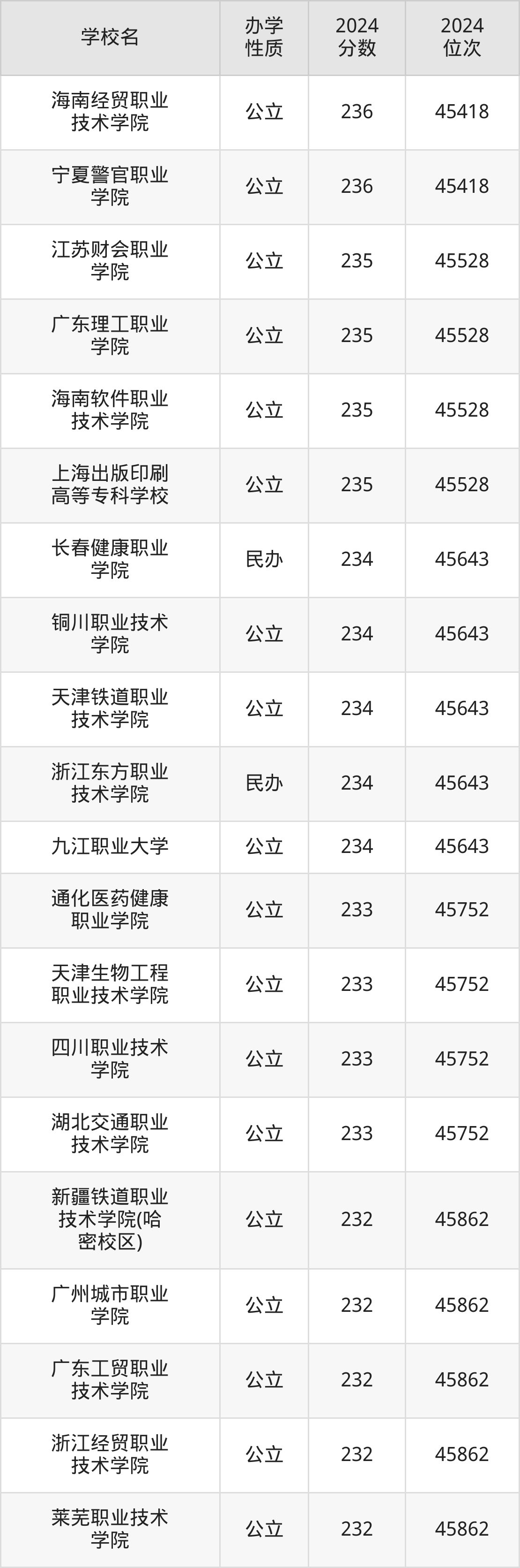 | 海南经贸职业 技术学院 | 236 | 45418 |
