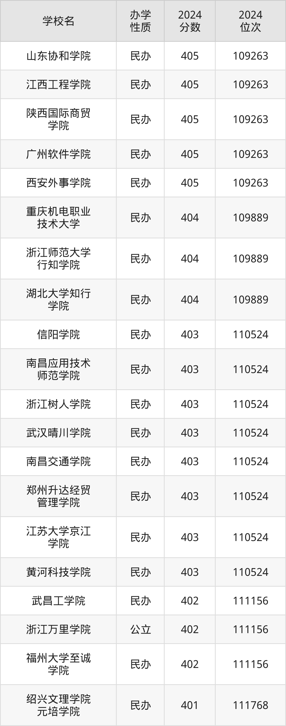 | 浙江师范大学 行知学院 | 404 | 109889 |