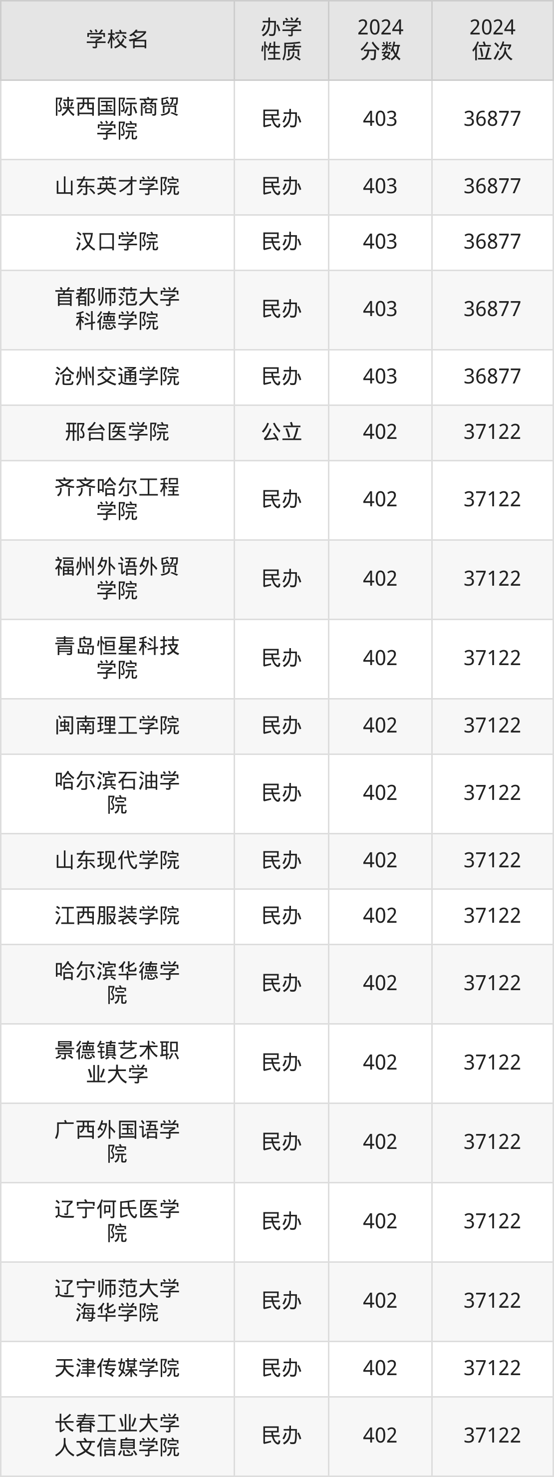 | 陕西国际商贸 学院 | 403 | 36877 |