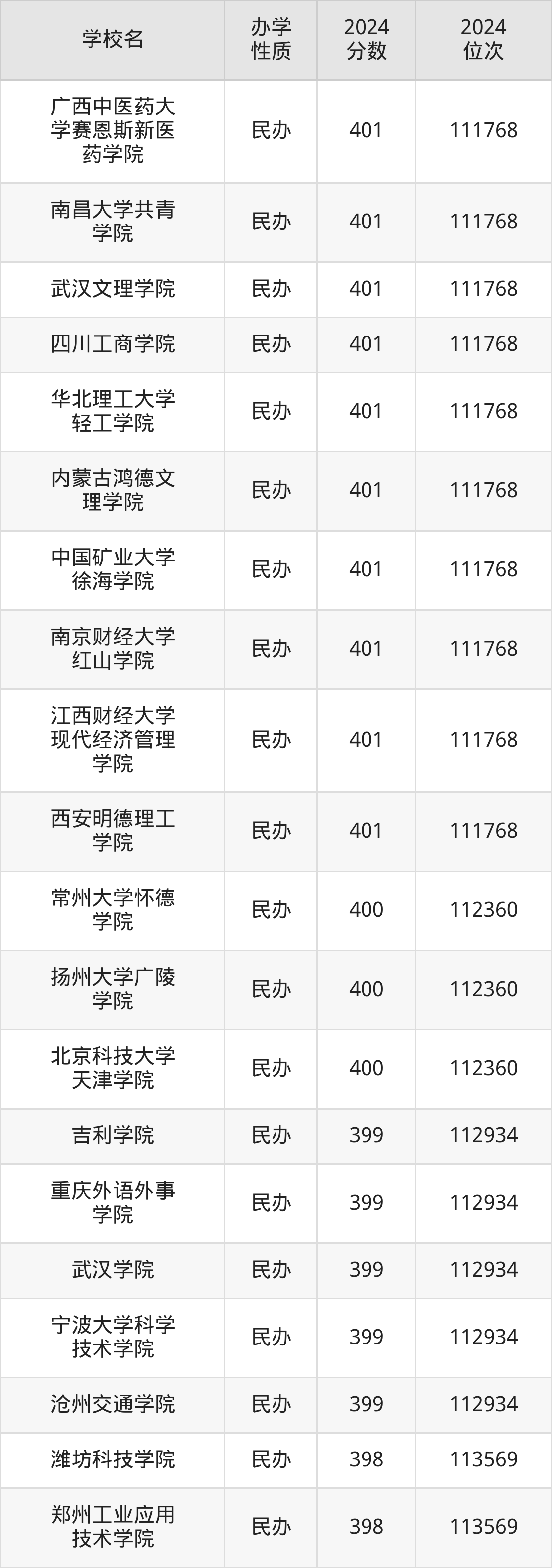 | 内蒙古鸿德文 理学院 | 401 | 111768 |