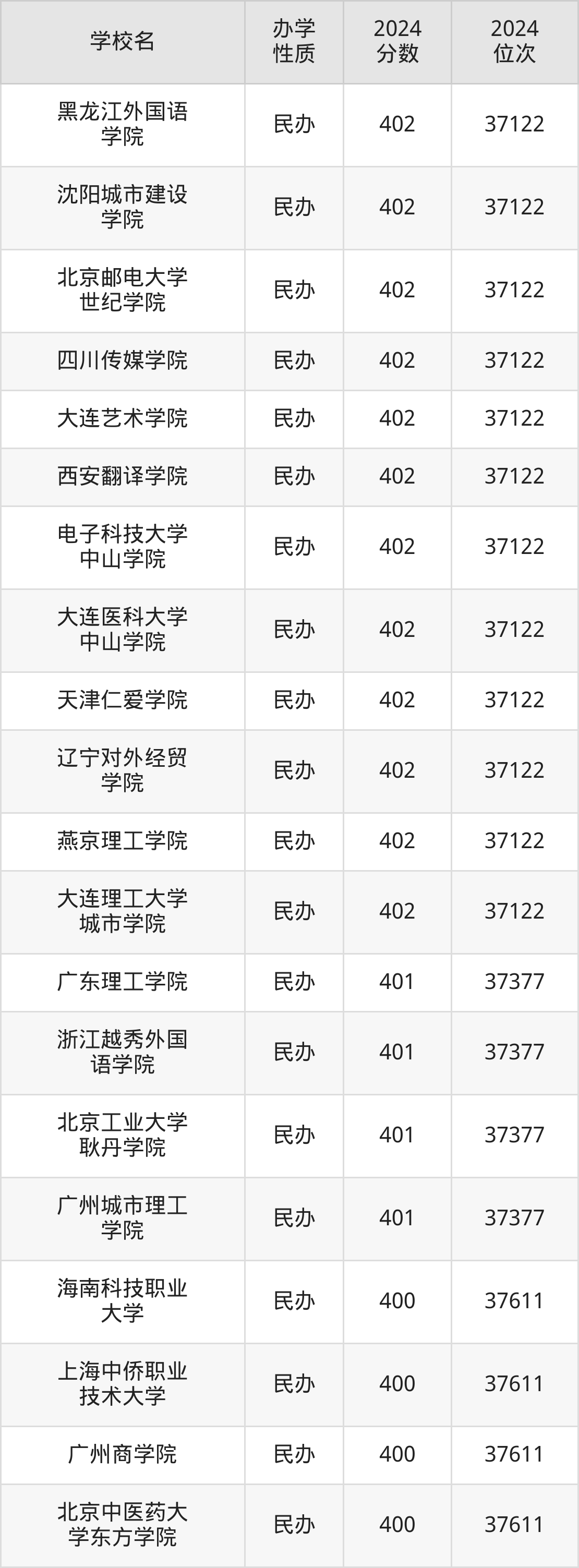 | 北京工业大学 耿丹学院 | 401 | 37377 |