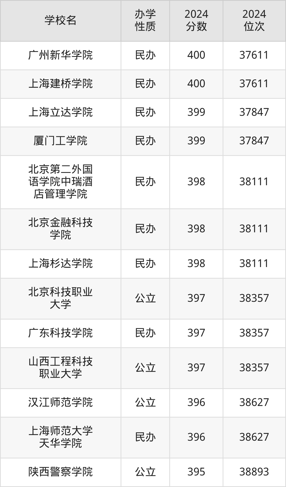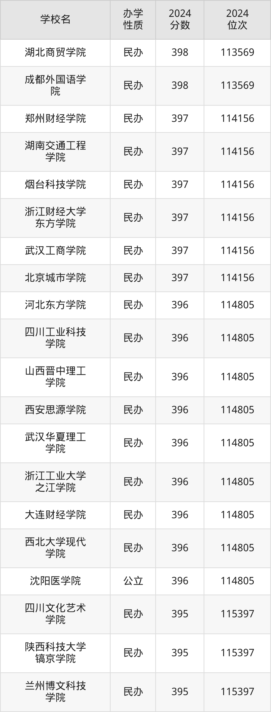 | 浙江财经大学 东方学院 | 397 | 114156 |