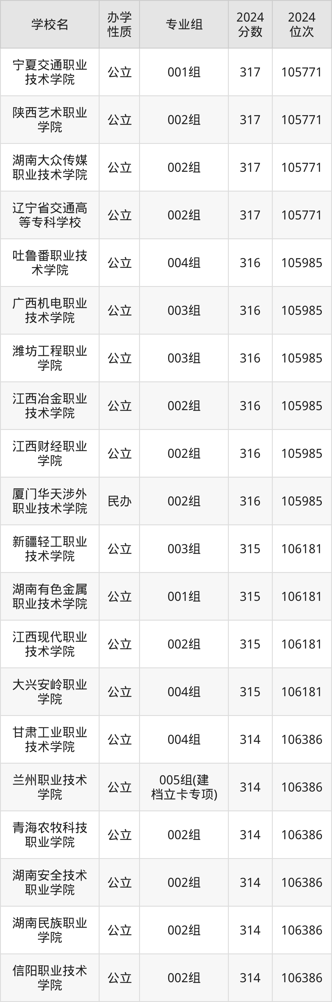 | 宁夏交通职业 技术学院 | 001组 | 317 | 105771 |