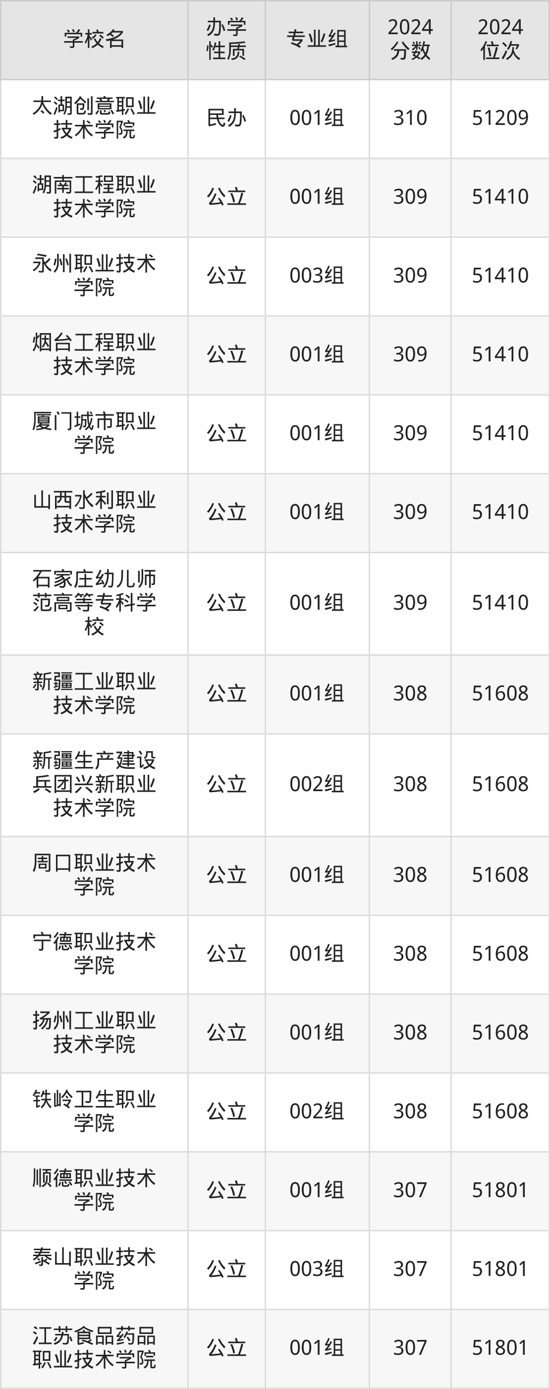 | 苏州百年职业 学院 | 001组(中 外合作) | 315 | 50249 |