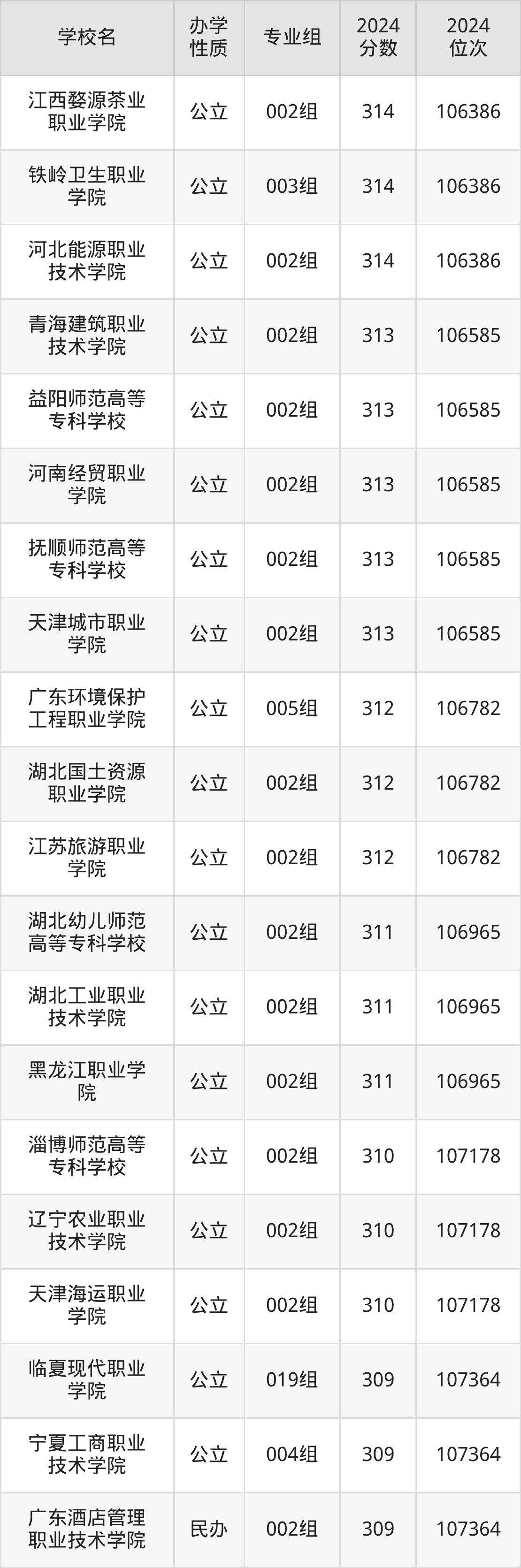 | 河北能源职业 技术学院 | 002组 | 314 | 106386 |