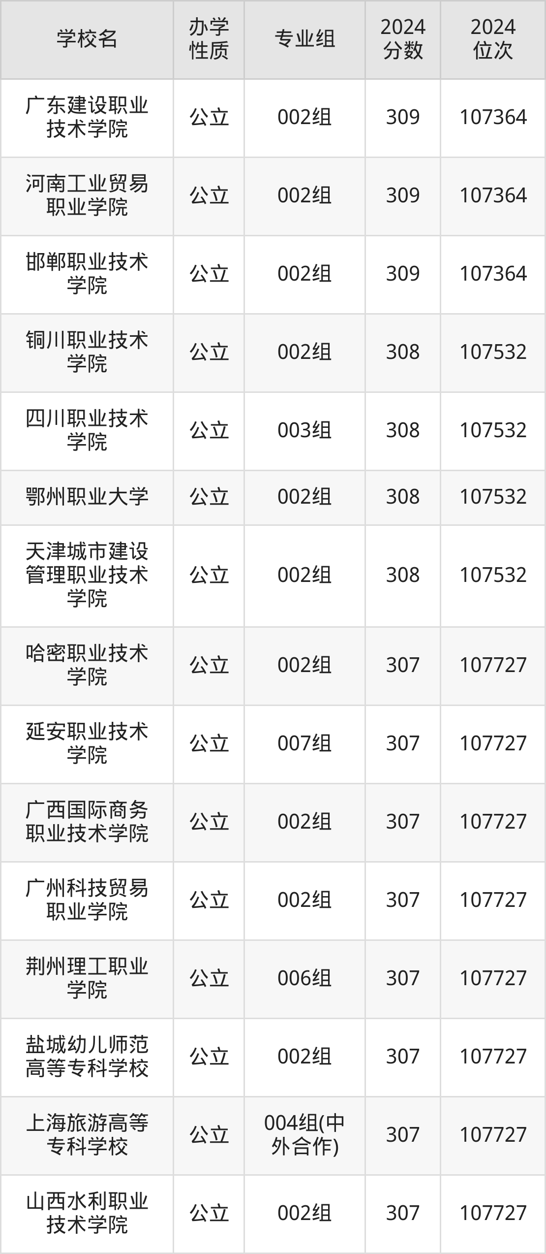 | 广东建设职业 技术学院 | 002组 | 309 | 107364 |