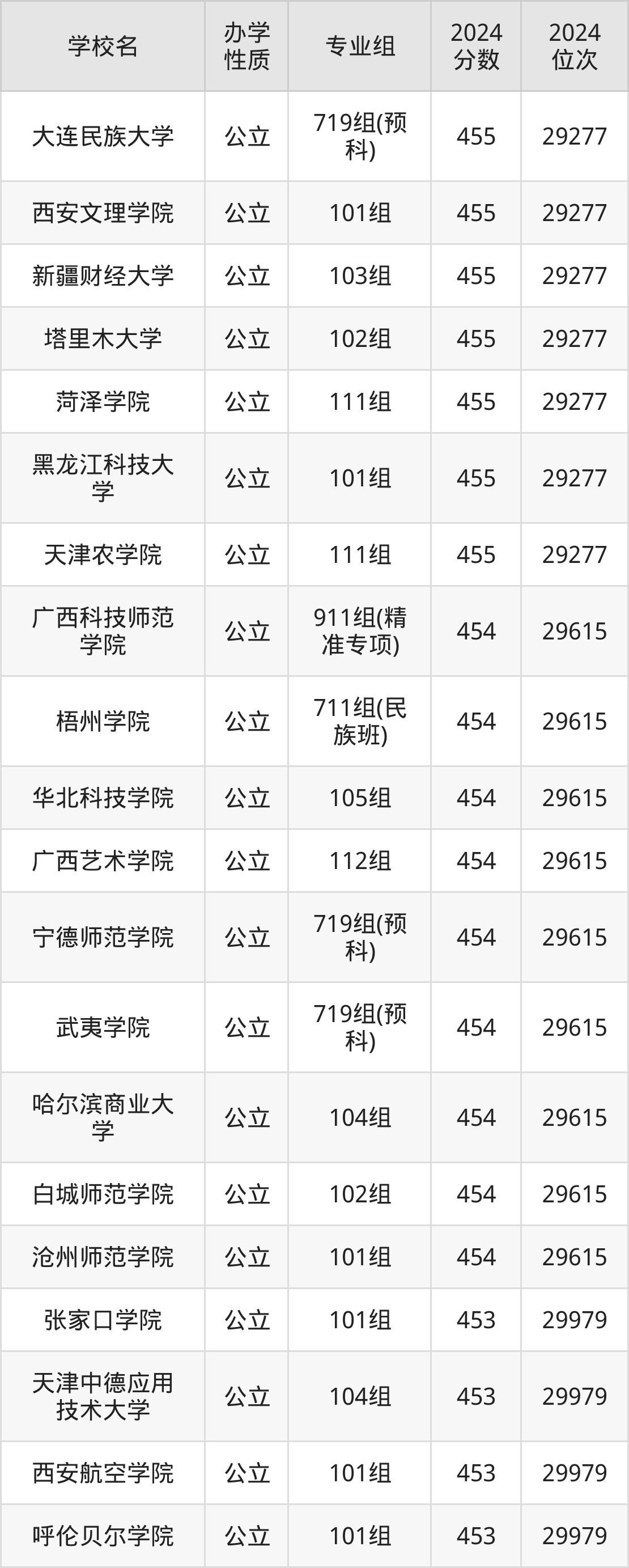 | 大连民族大学 | 719组(预 科) | 455 | 29277 |