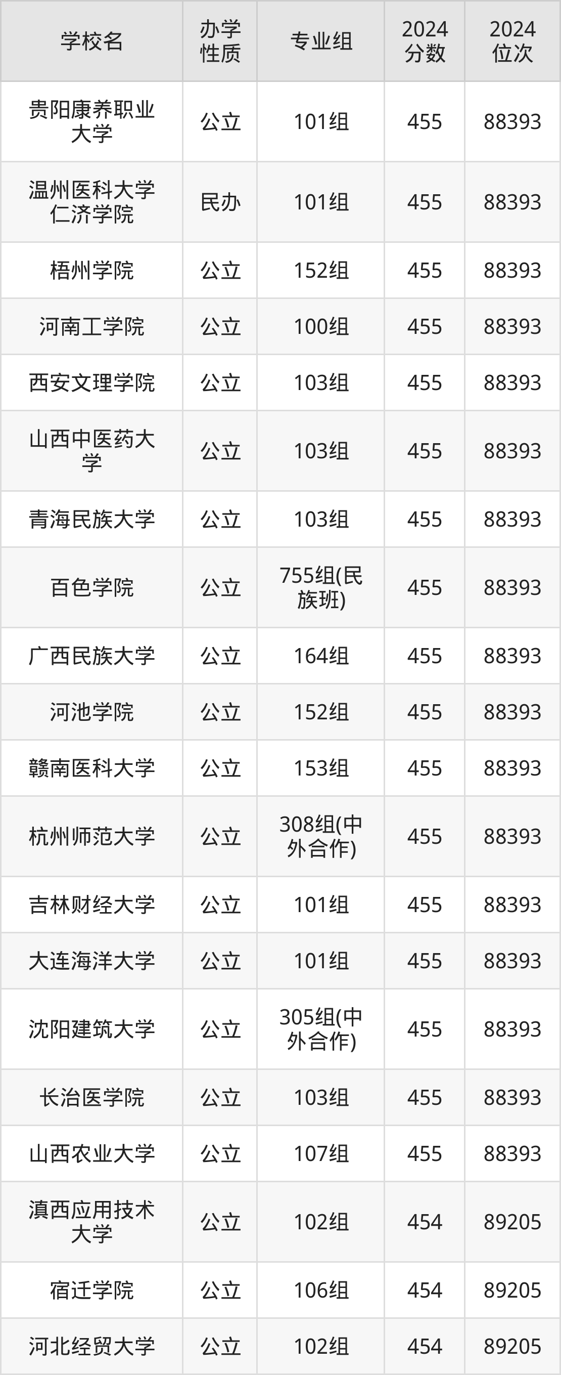| 右江民族医学 院 | 103组 | 448 | 93865 |