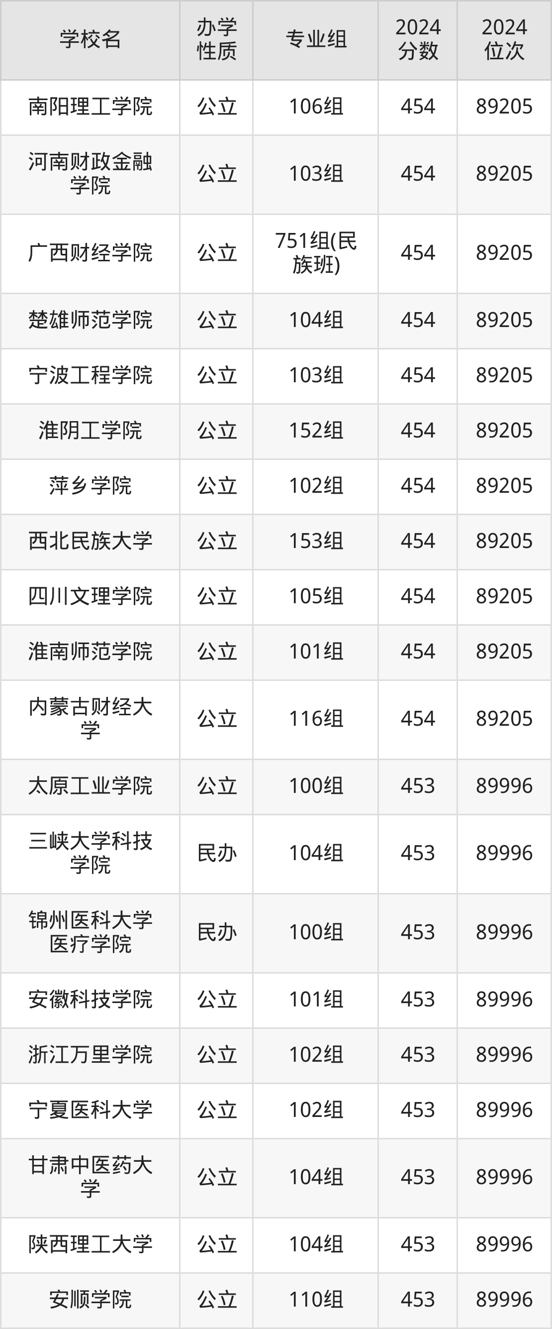 | 北方民族大学 | 543组(国 家专项计划) | 447 | 94686 |