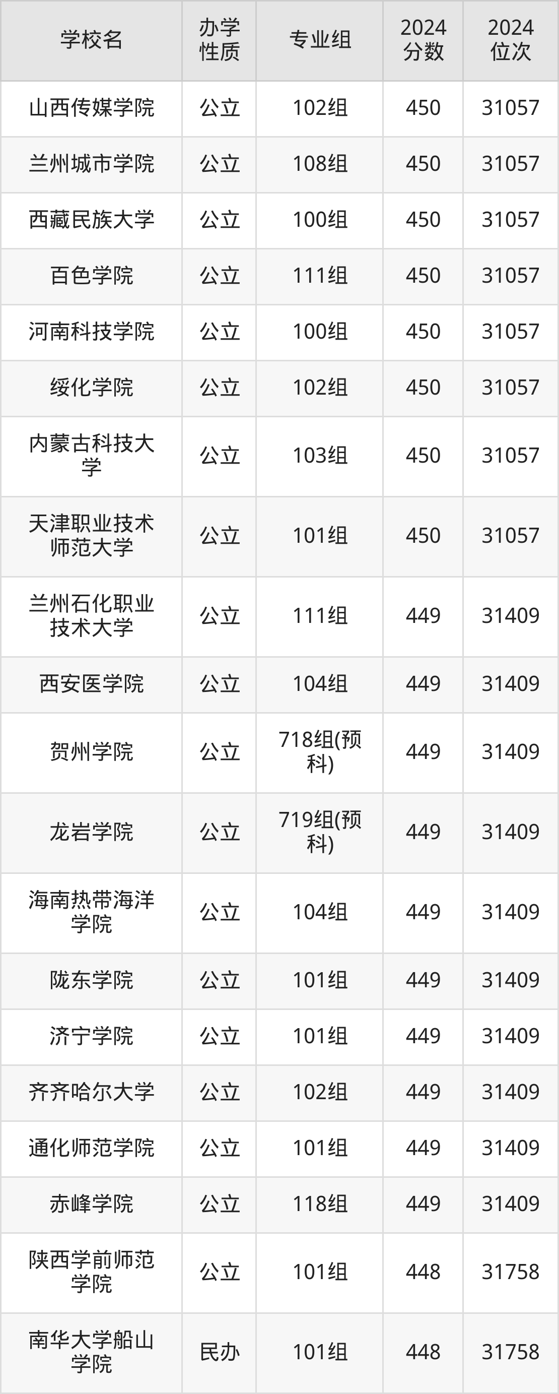 | 贺州学院 | 718组(预 科) | 449 | 31409 |