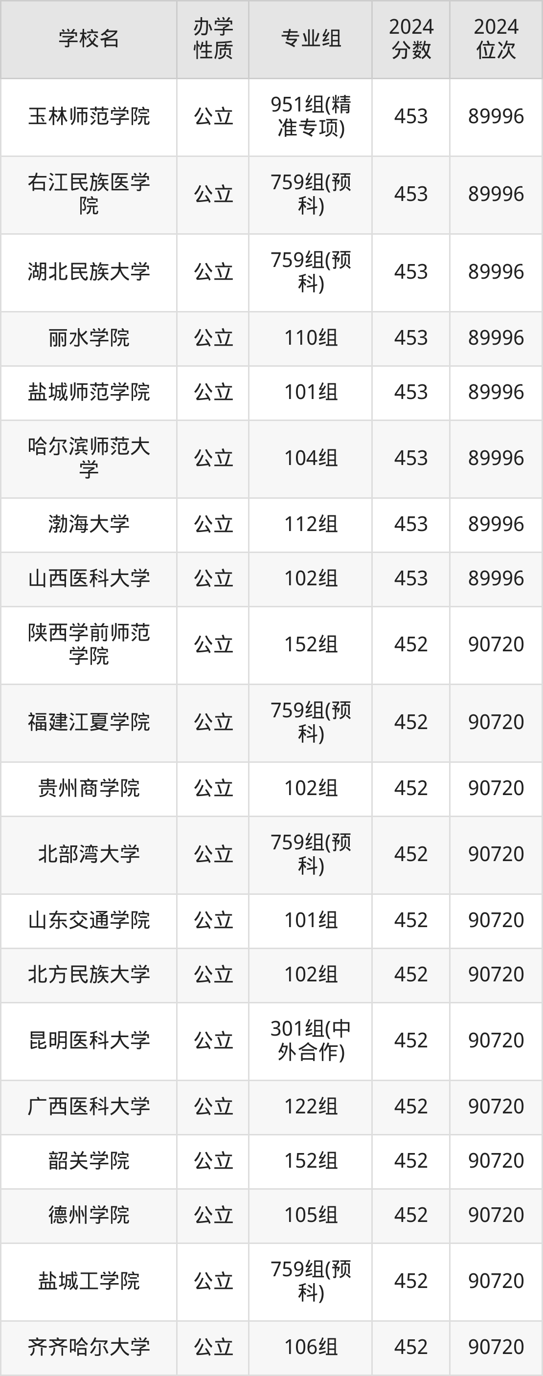 | 右江民族医学 院 | 758组(预 科) | 447 | 94686 |