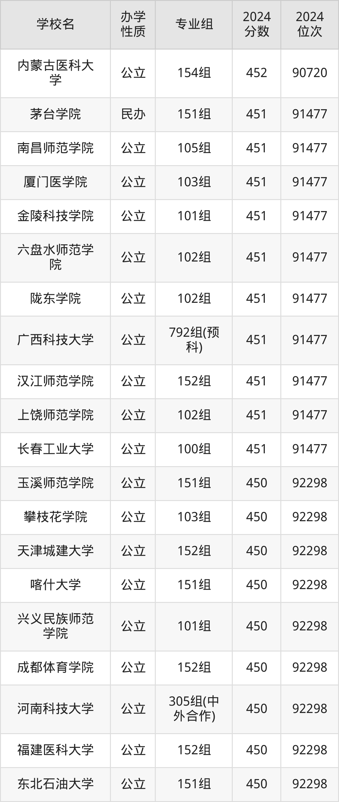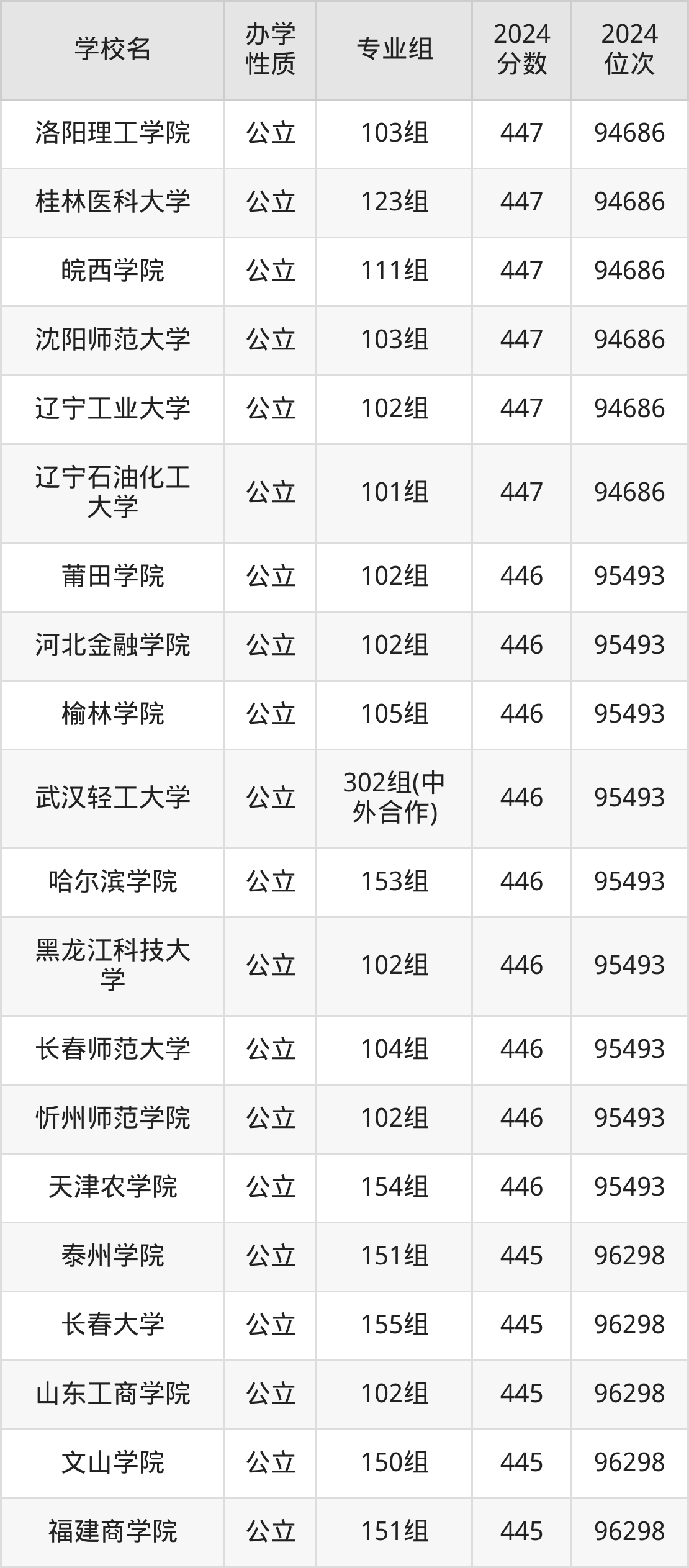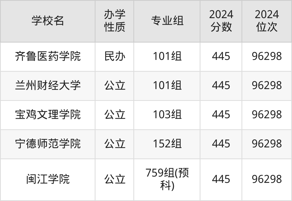 | 学校名 | 专业组 | 2024 分数 | 2024 位次 |