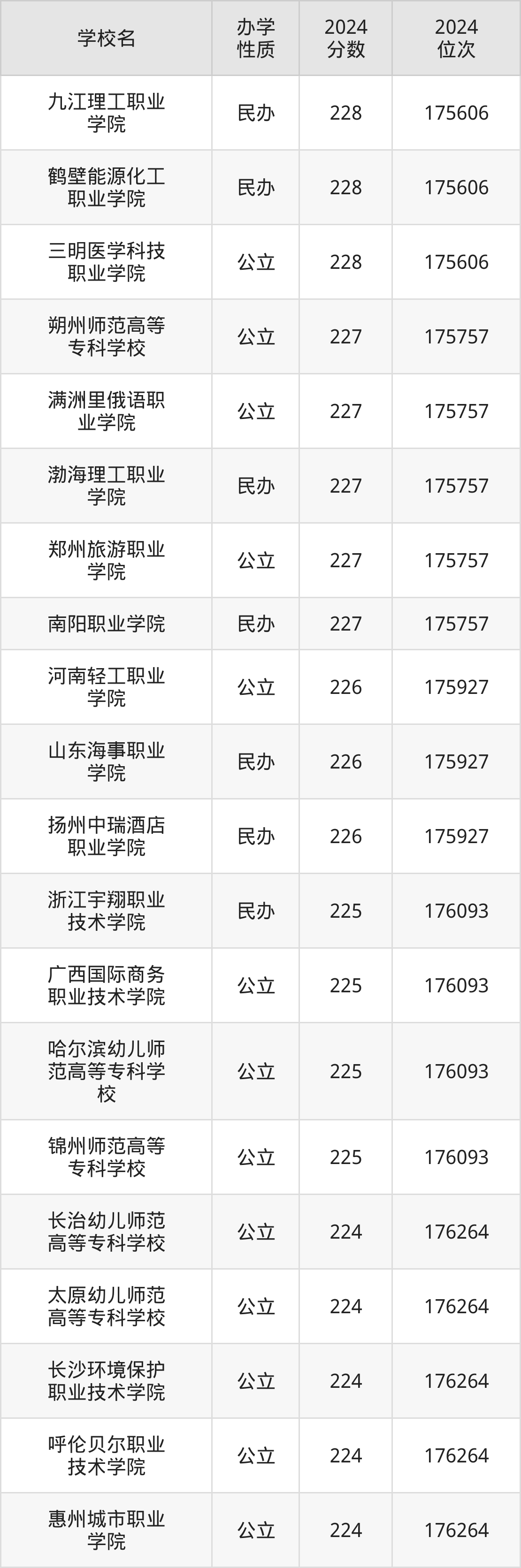 | 长治幼儿师范 高等专科学校 | 224 | 176264 |