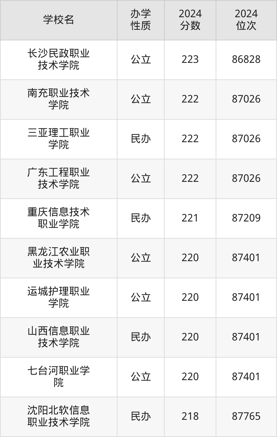 | 长沙民政职业 技术学院 | 223 | 86828 |