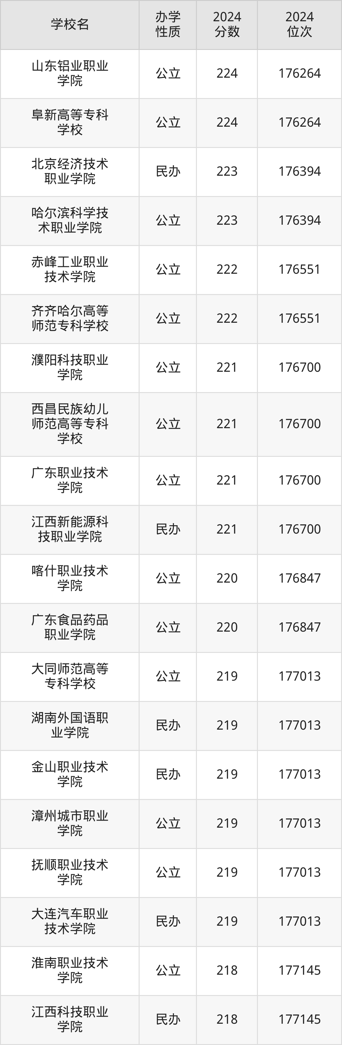 | 江西新能源科 技职业学院 | 221 | 176700 |