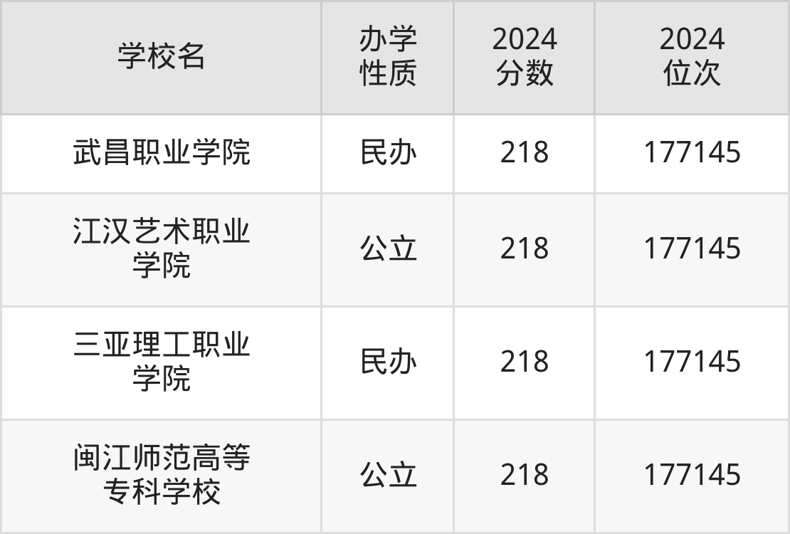 | 江汉艺术职业 学院 | 218 | 177145 |