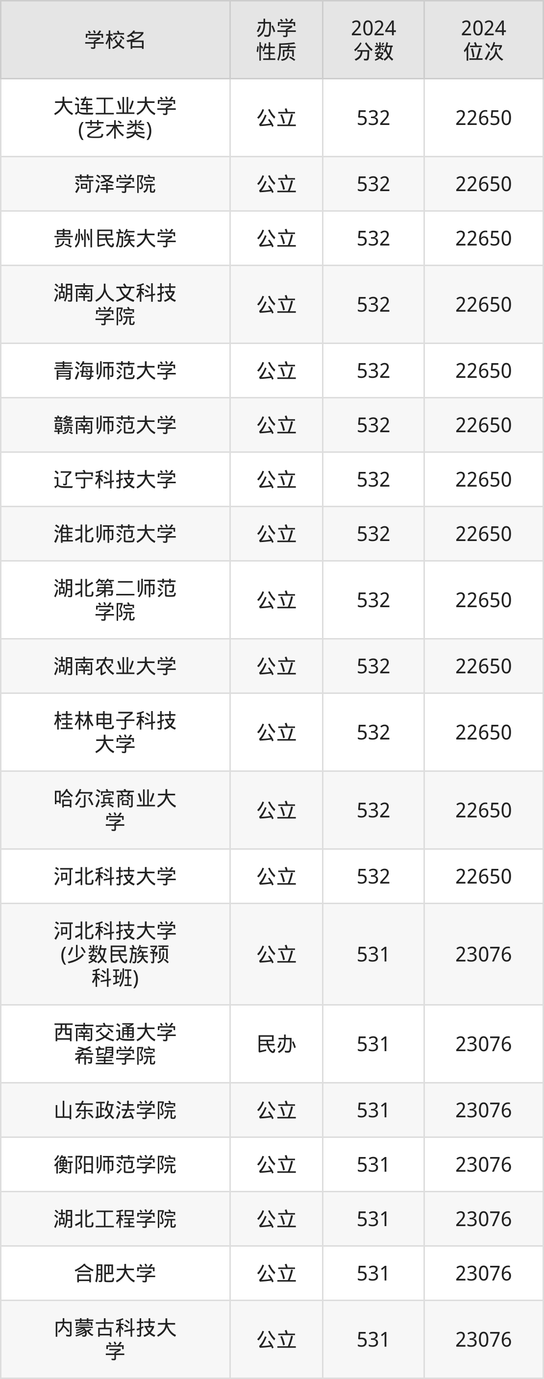 | 大连工业大学 (艺术类) | 532 | 22650 |