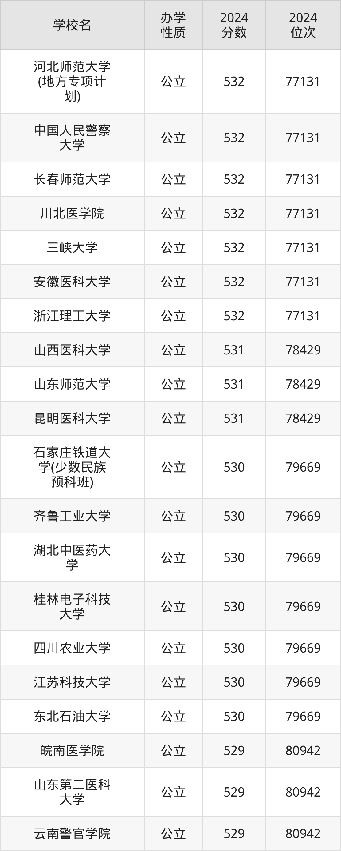 | 河北师范大学 (地方专项计 划) | 532 | 77131 |
