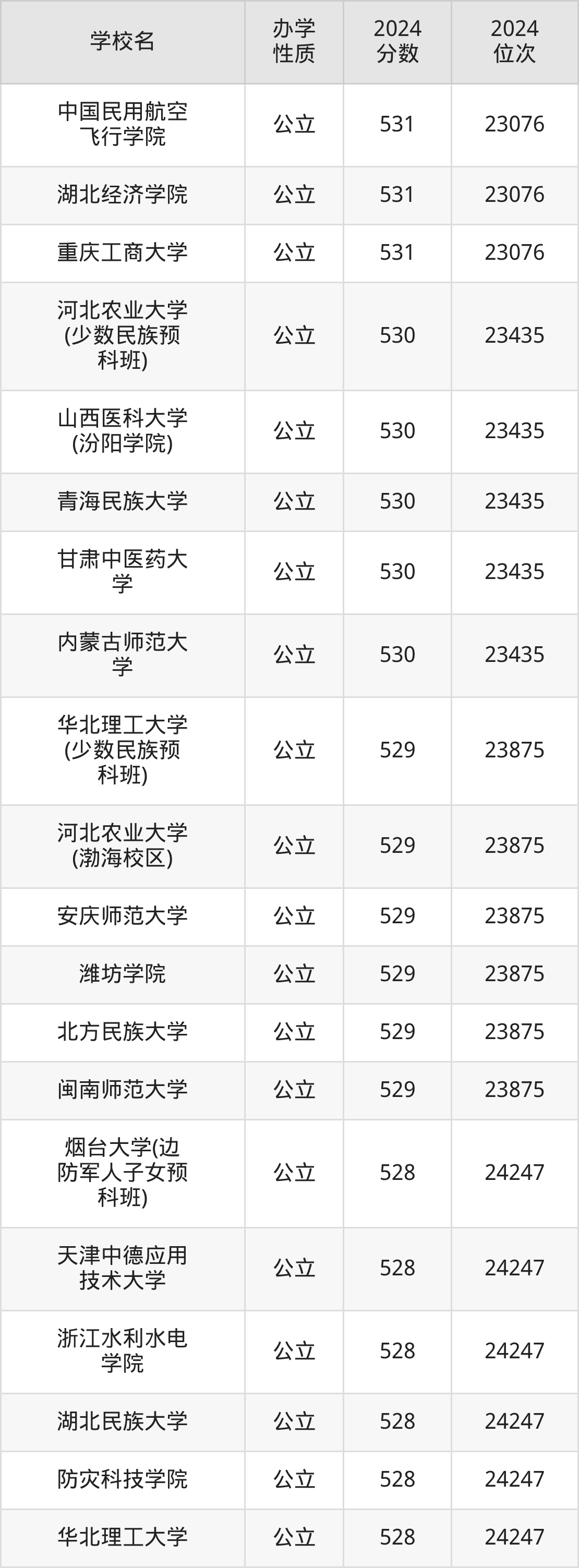 | 华北理工大学 (少数民族预 科班) | 529 | 23875 |