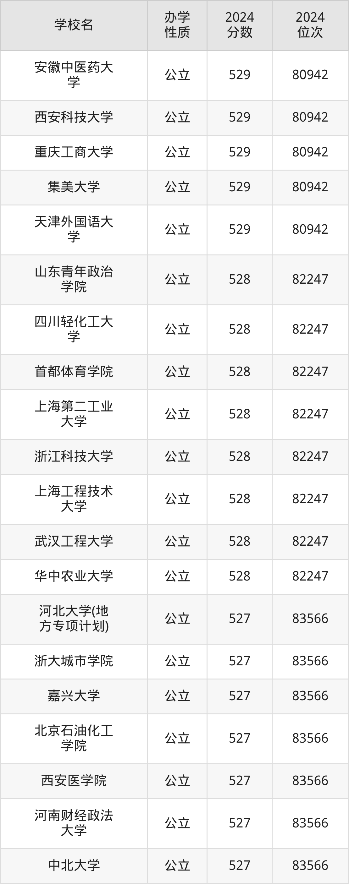 | 河北大学(地 方专项计划) | 527 | 83566 |