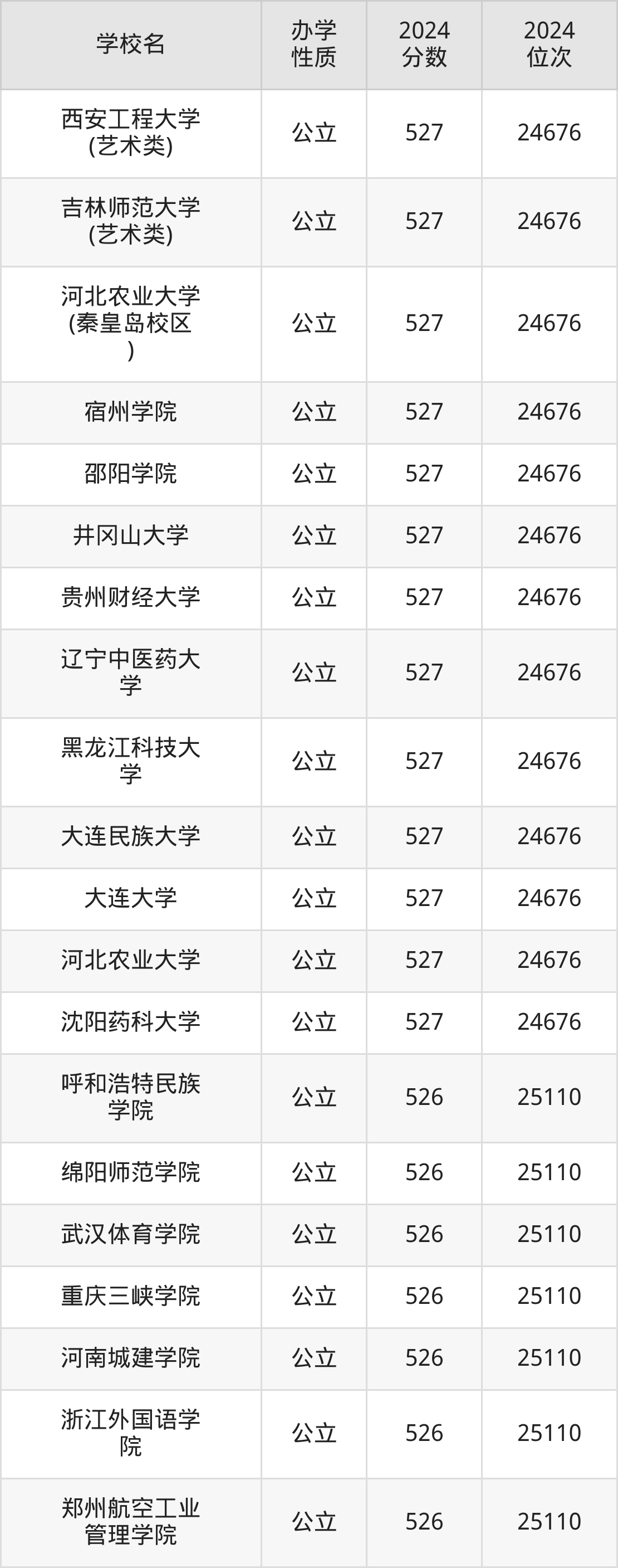 | 吉林师范大学 (艺术类) | 527 | 24676 |