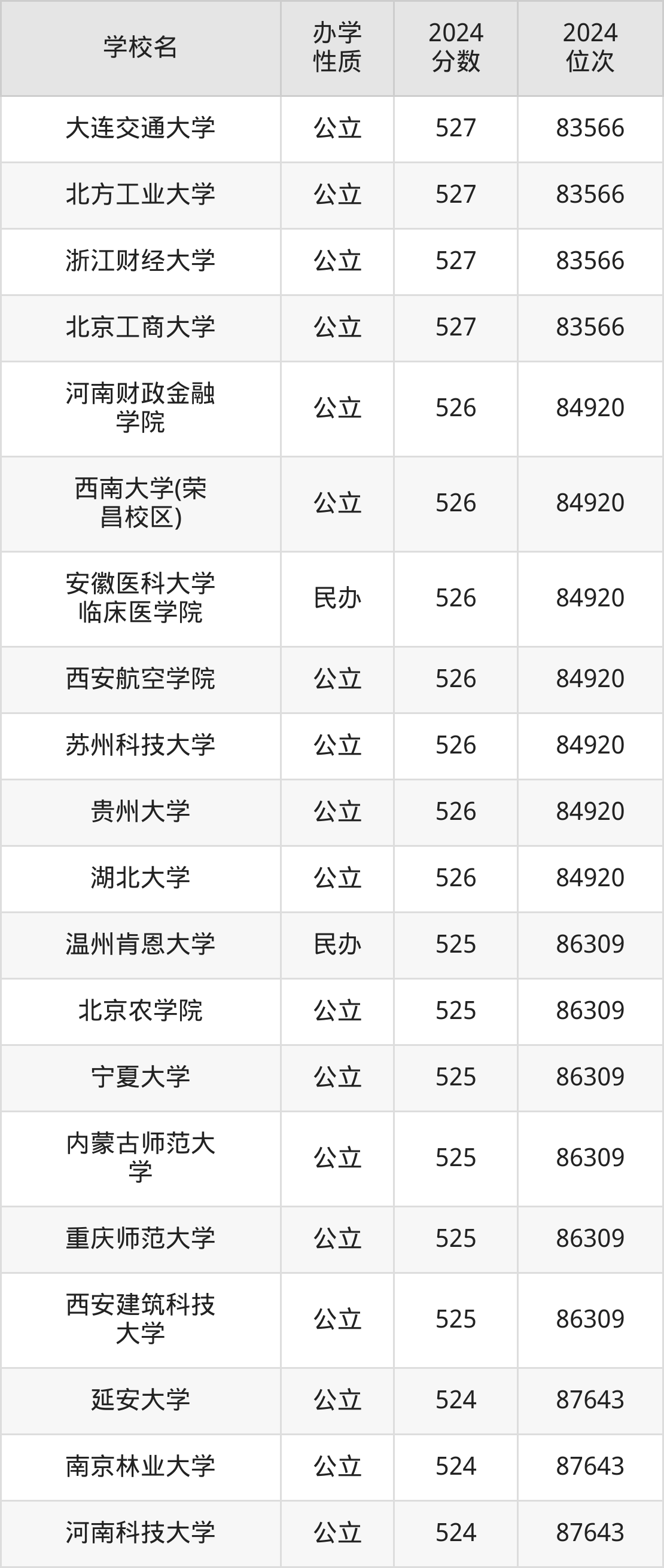 | 西安工程大学 (艺术类) | 527 | 24676 |