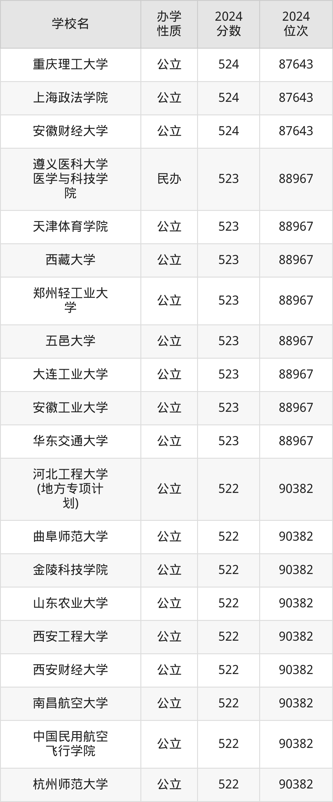 | 河北工程大学 (地方专项计 划) | 522 | 90382 |